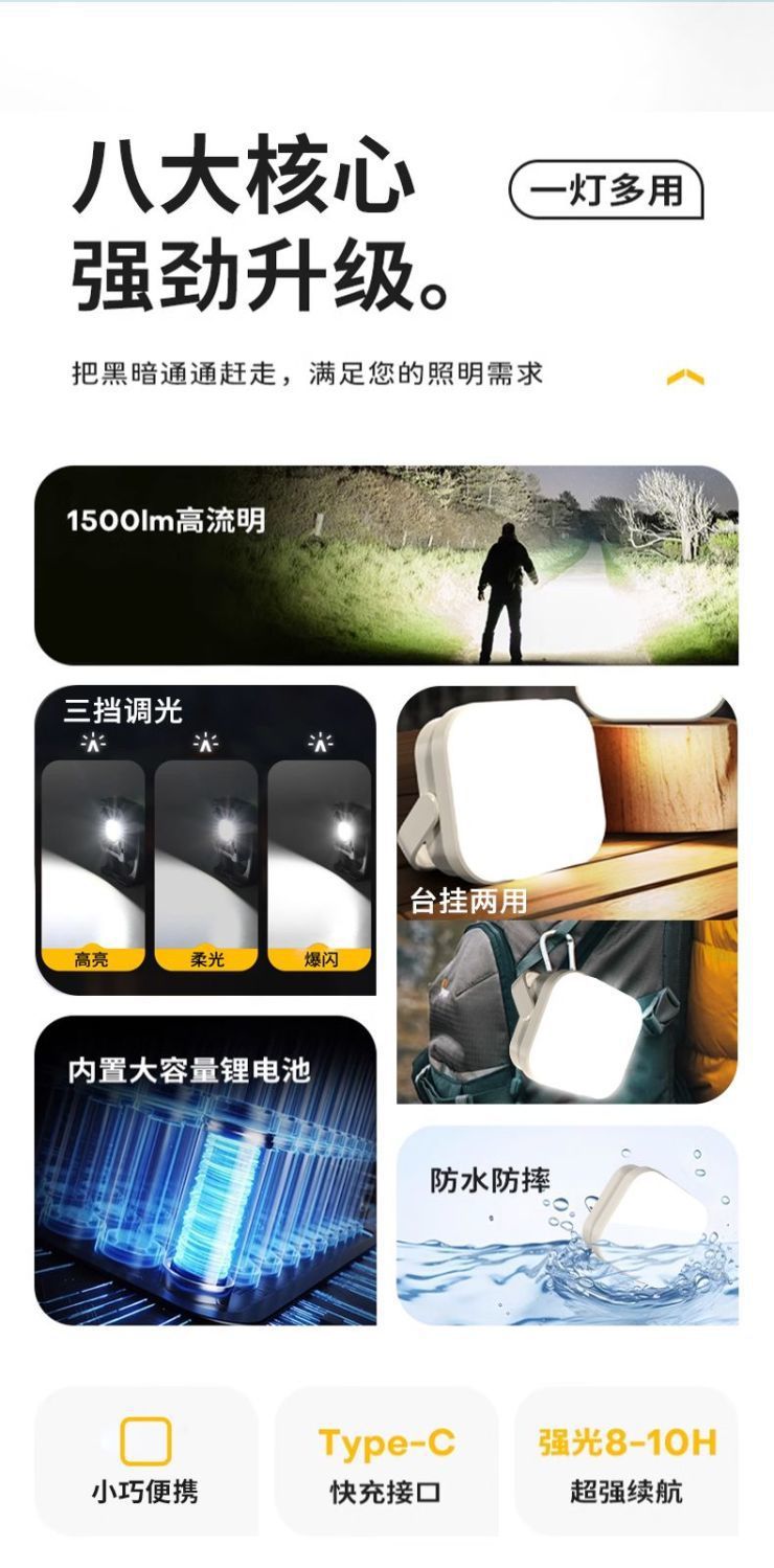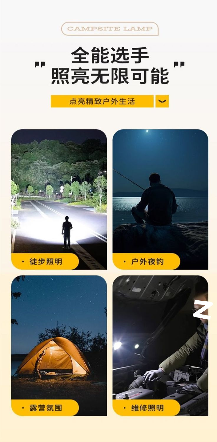 캠핑 라이트 충전식 긴 내구성 텐트 라이트 비상 조명 캠핑 라이트 충전식 조명 새로운스토어 가기