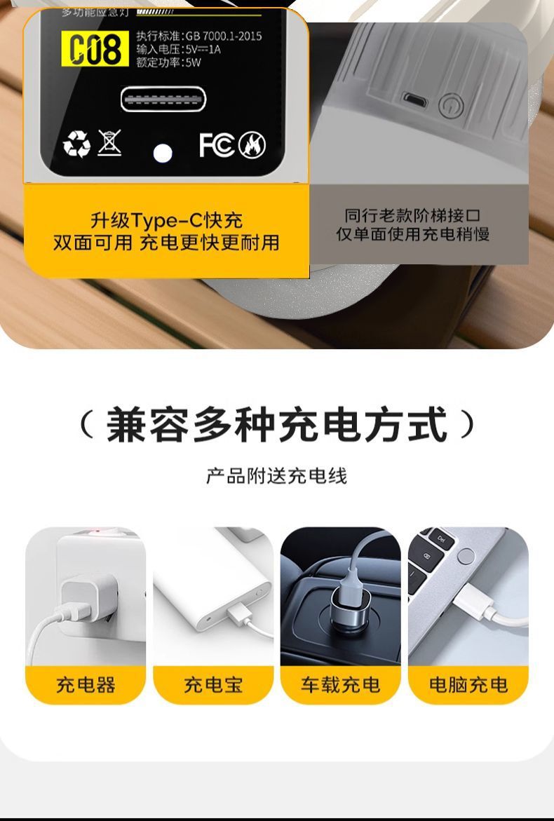 캠핑 라이트 충전식 긴 내구성 텐트 라이트 비상 조명 캠핑 라이트 충전식 조명 새로운