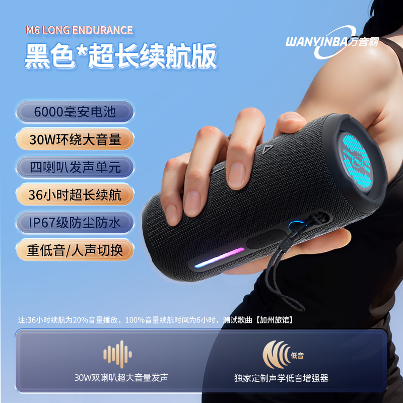Wanyinba M6 긴 배터리 버전 블루투스 스피커 야외 방수 휴대용 자동차 탑승 슈퍼베이스 홈 사운드스토어 가기