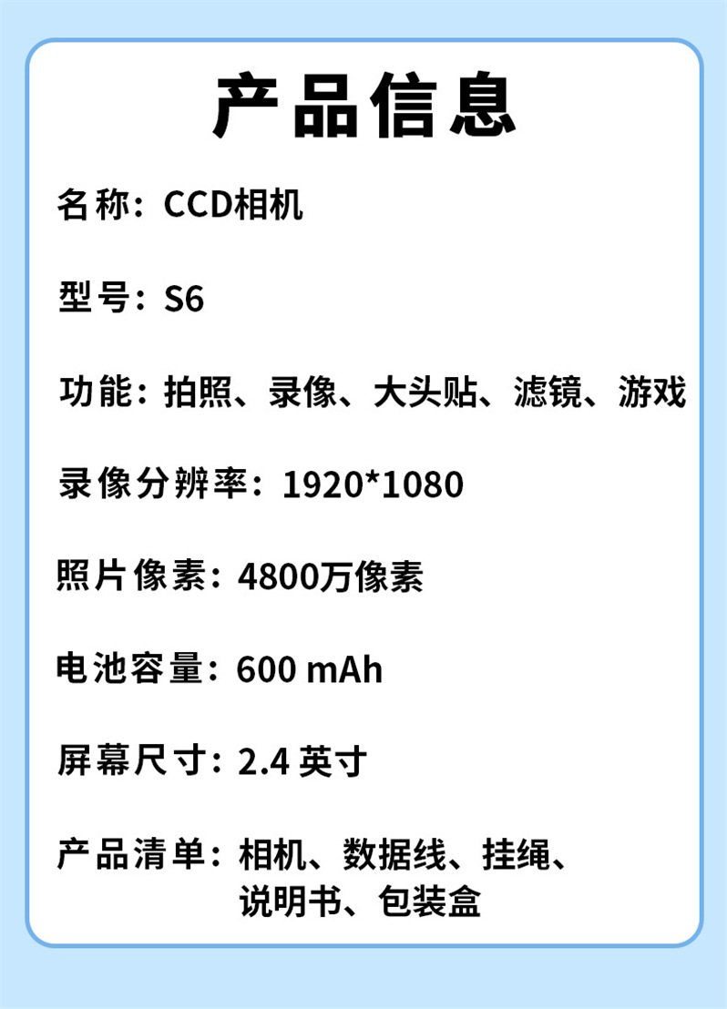 학생용 S6 디지털 카메라 CCD 고화질 카메라 어린이 만화 고화질 플립 선물 도매스토어 가기