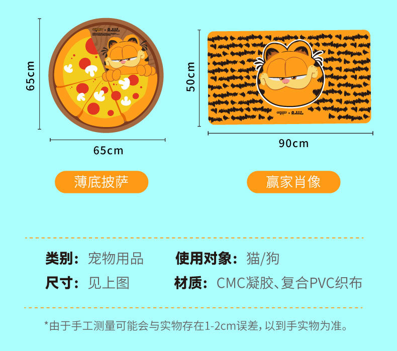 파이웨이시와 공동 브랜드로 출시한 가필드 강아지 쿨링 매트, 고양이 여름 수면용 매트, 여름 냉각 아이스 웨이스트 매트리스