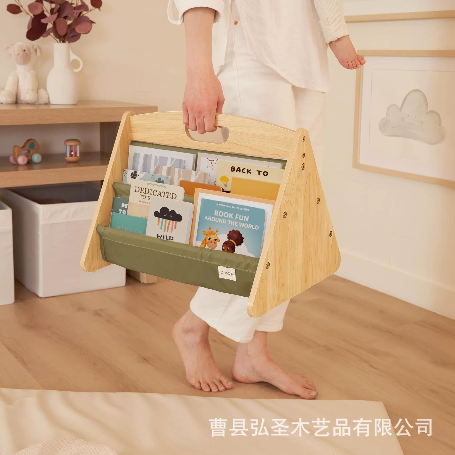 나무 어린이 책장 바닥에 붙은 간단한 대나무 3층 도서 및 잡지 선반 그림책 선반 다기능 수납 선반 수납 선반