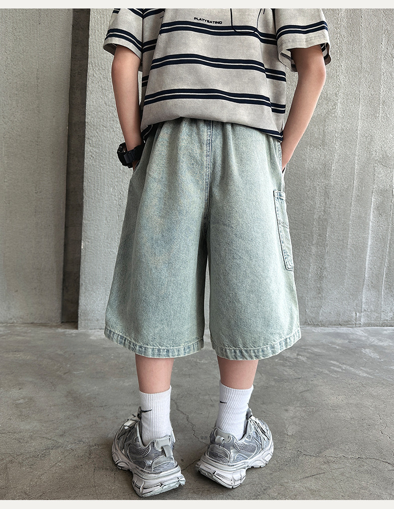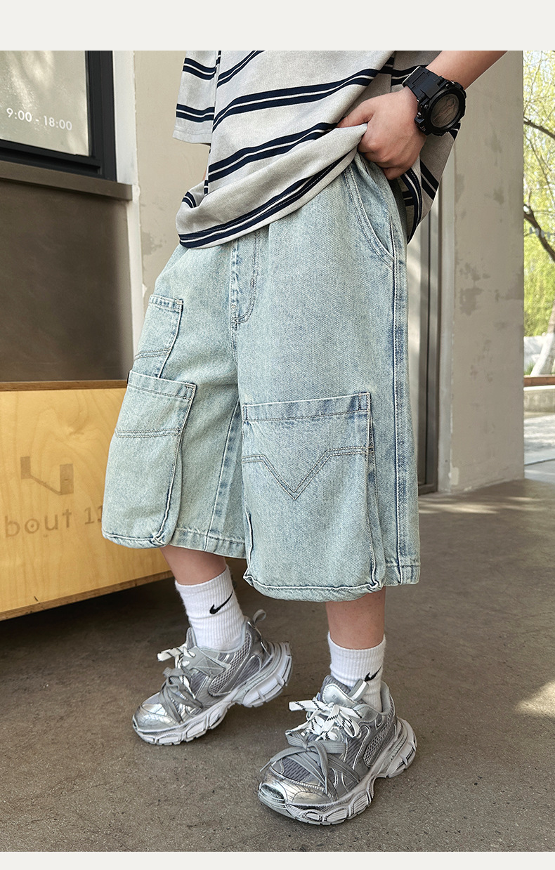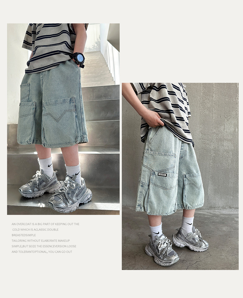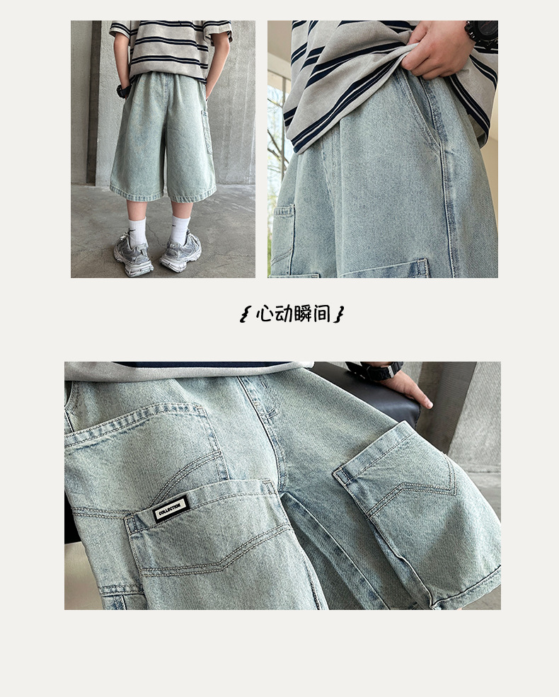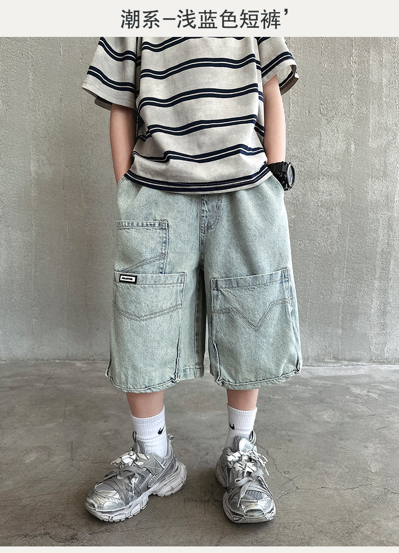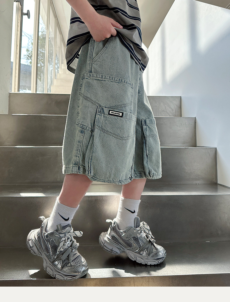 남학생 데님 작업복 반바지 2025 년 여름 새로운 어린이 5 점 바지, 큰 소년 여름 유행 바지스토어 가기