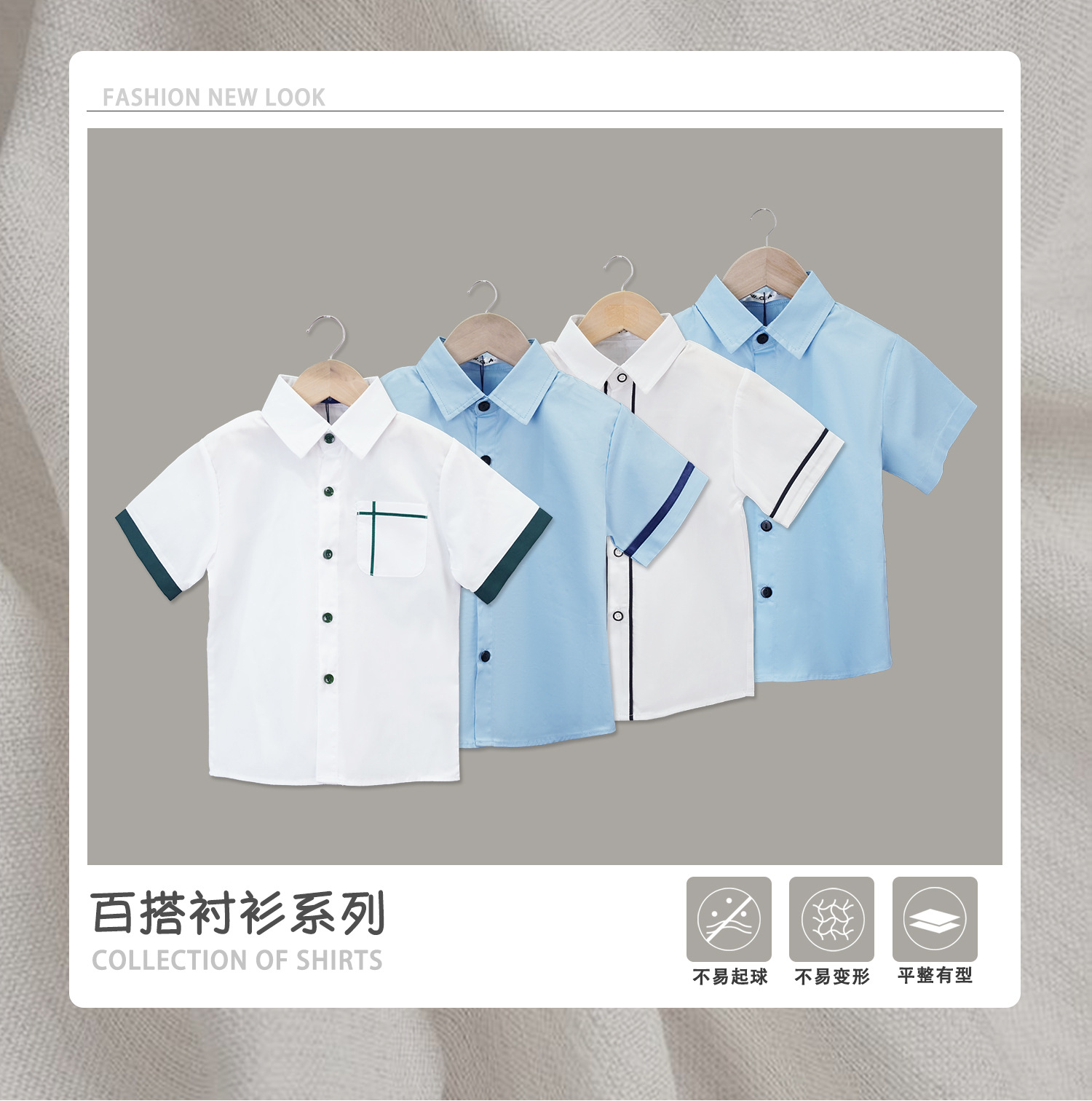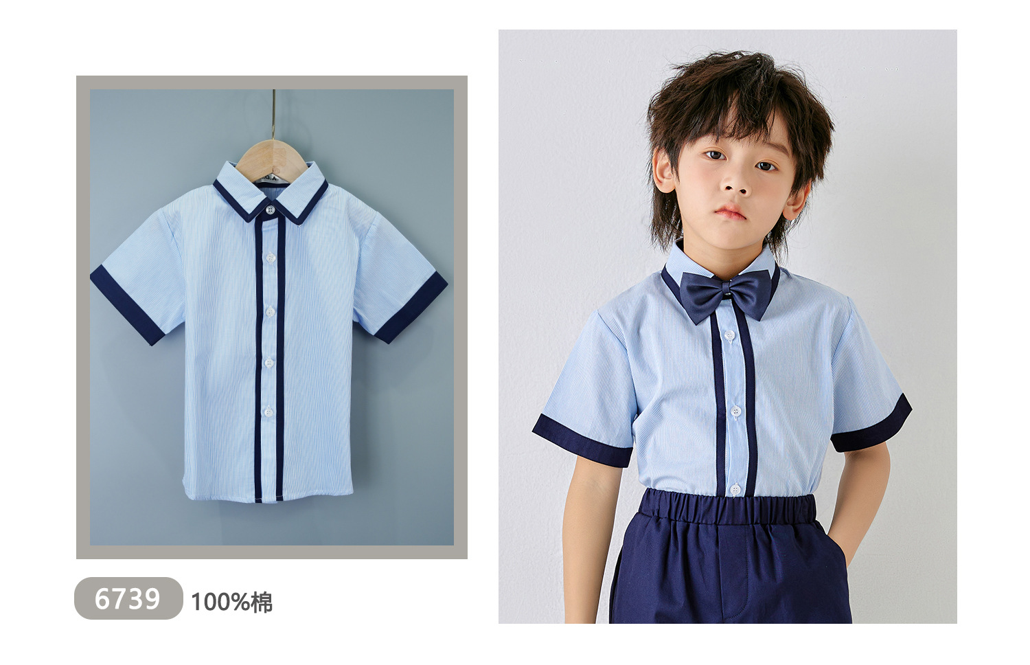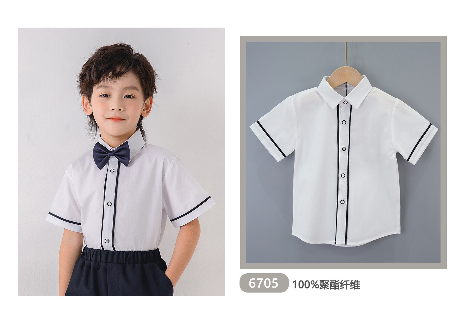 어린이 화이트 셔츠 소년 반팔 블루 여름 학교 유니폼 티셔츠 소녀 화이트 셔츠 테이블 공연 의류스토어 가기