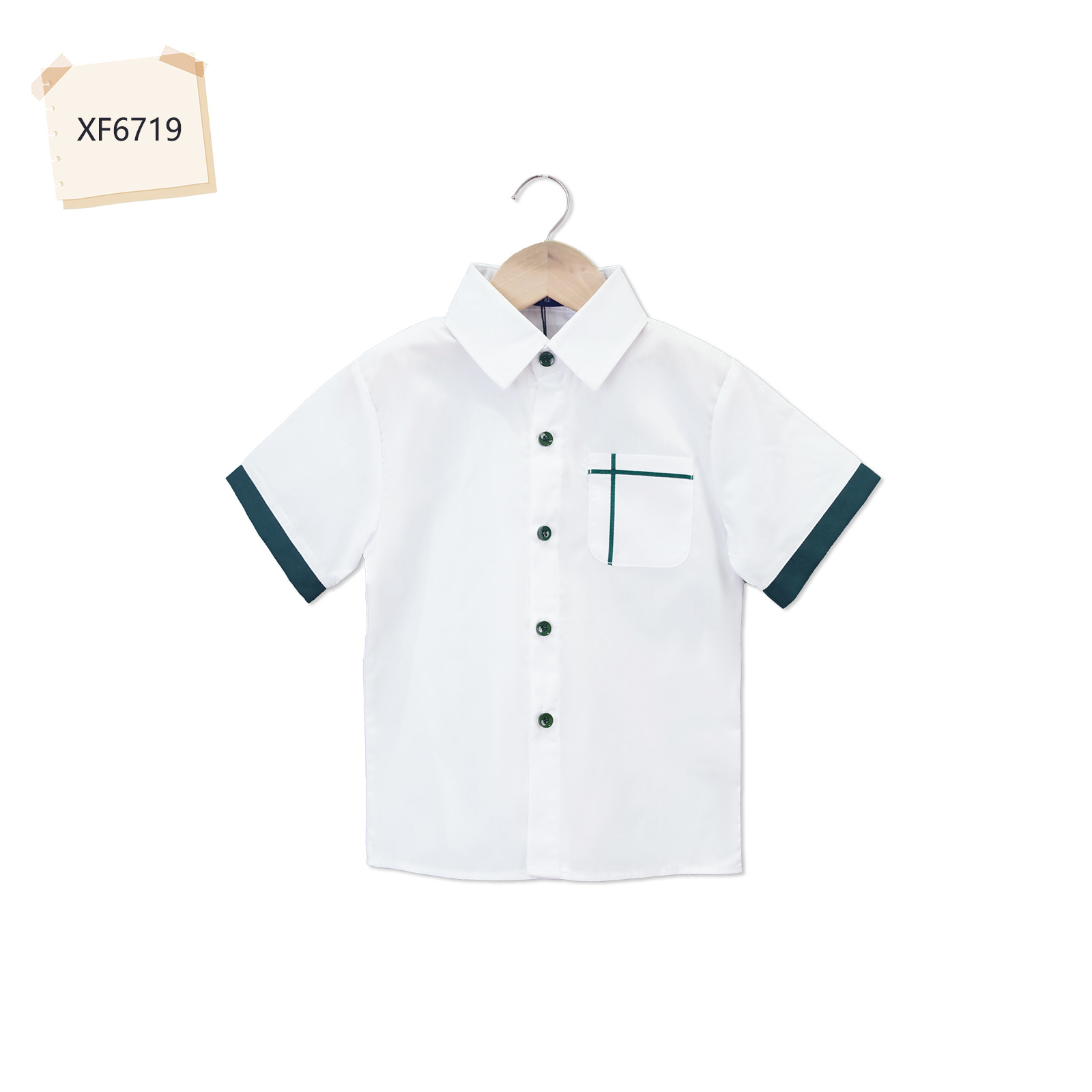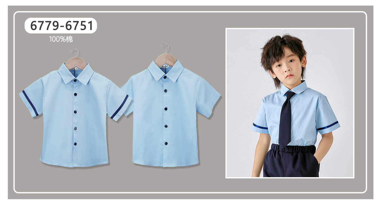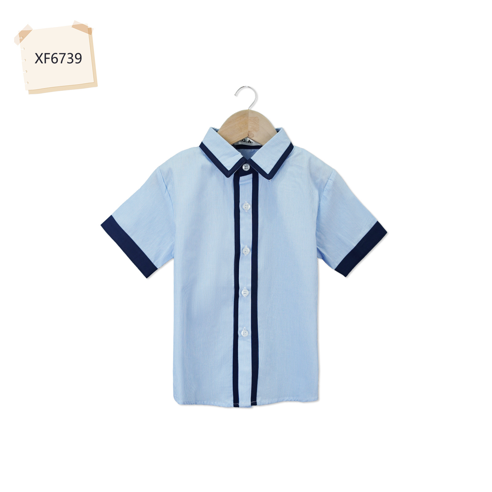 어린이 화이트 셔츠 소년 반팔 블루 여름 학교 유니폼 티셔츠 소녀 화이트 셔츠 테이블 공연 의류스토어 가기