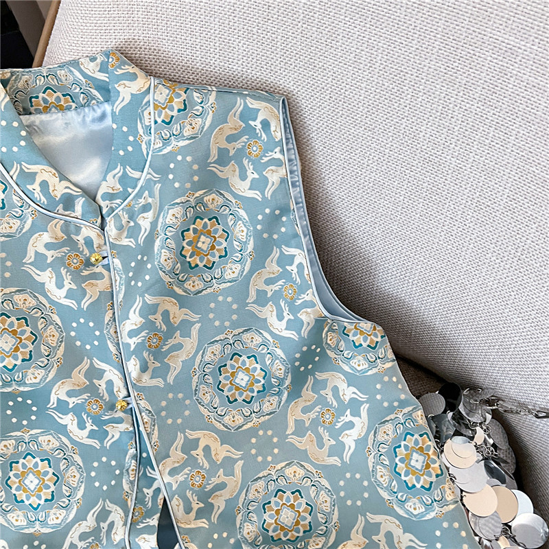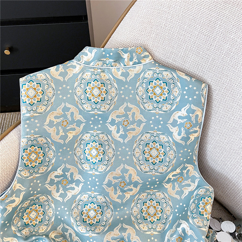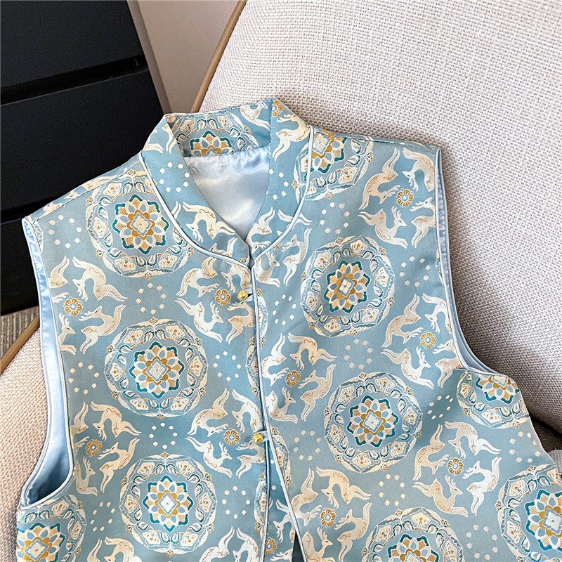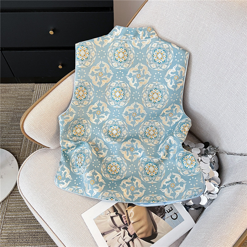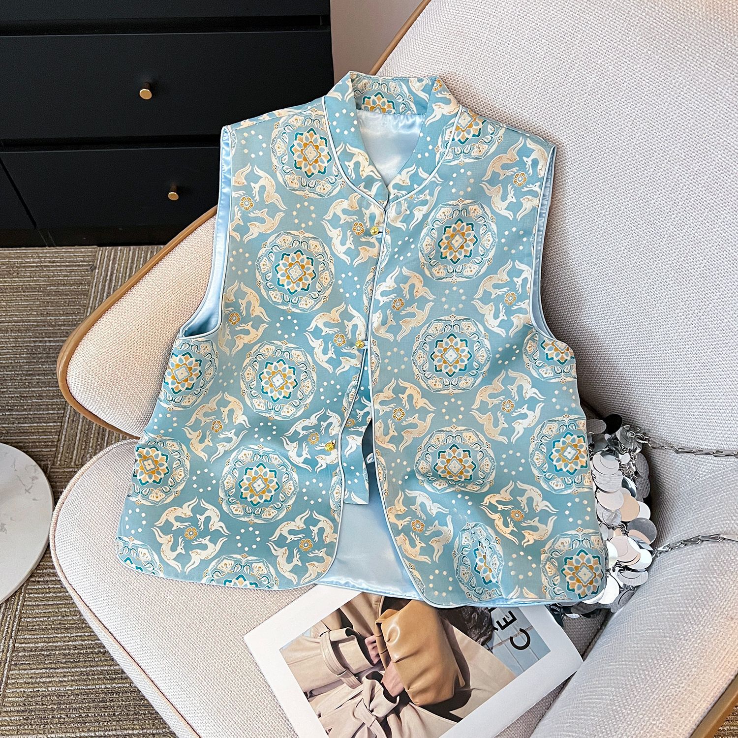 Zqn0159 여성을위한 새로운 중국 스타일 국립 스타일 자카드 조끼 2025 새로운 블루 패션 하이 엔드 조끼 탑스토어 가기