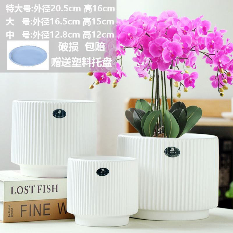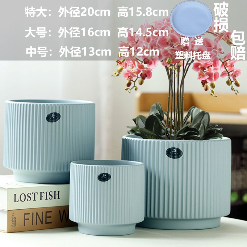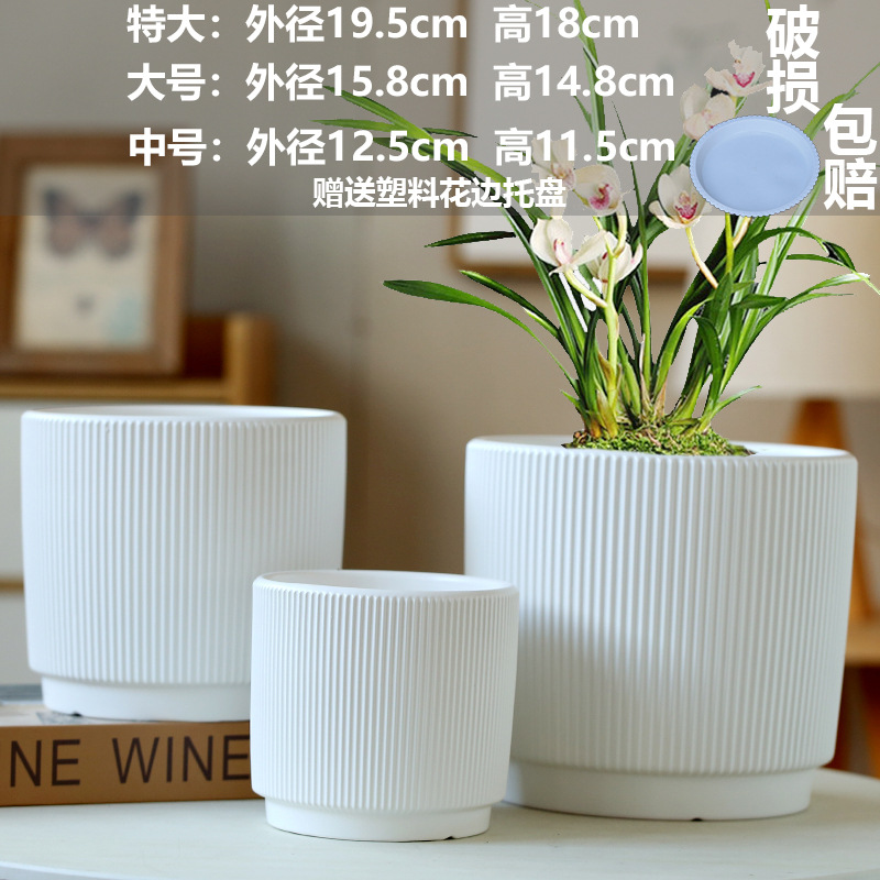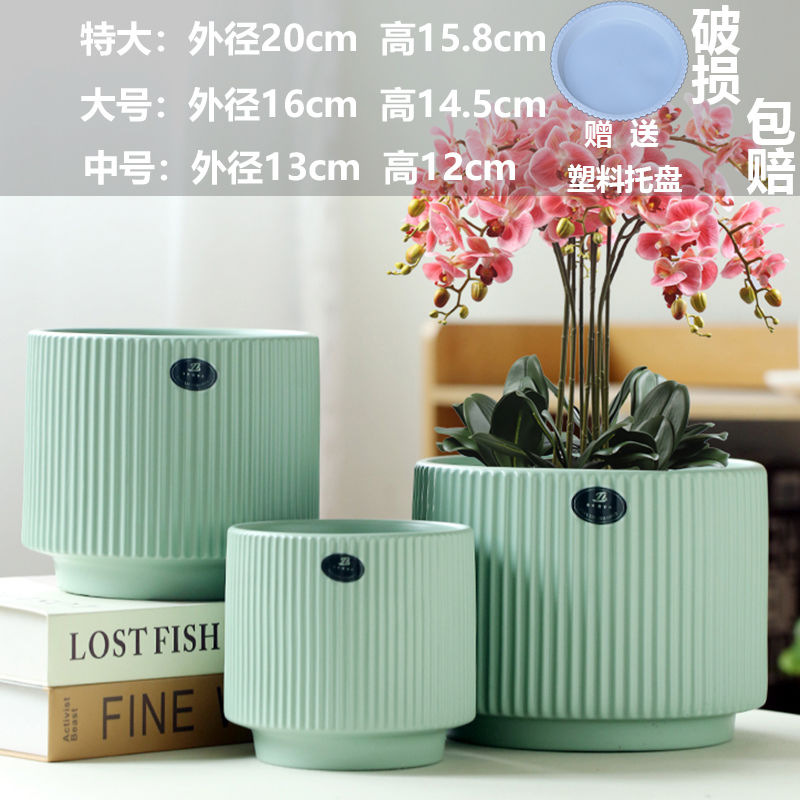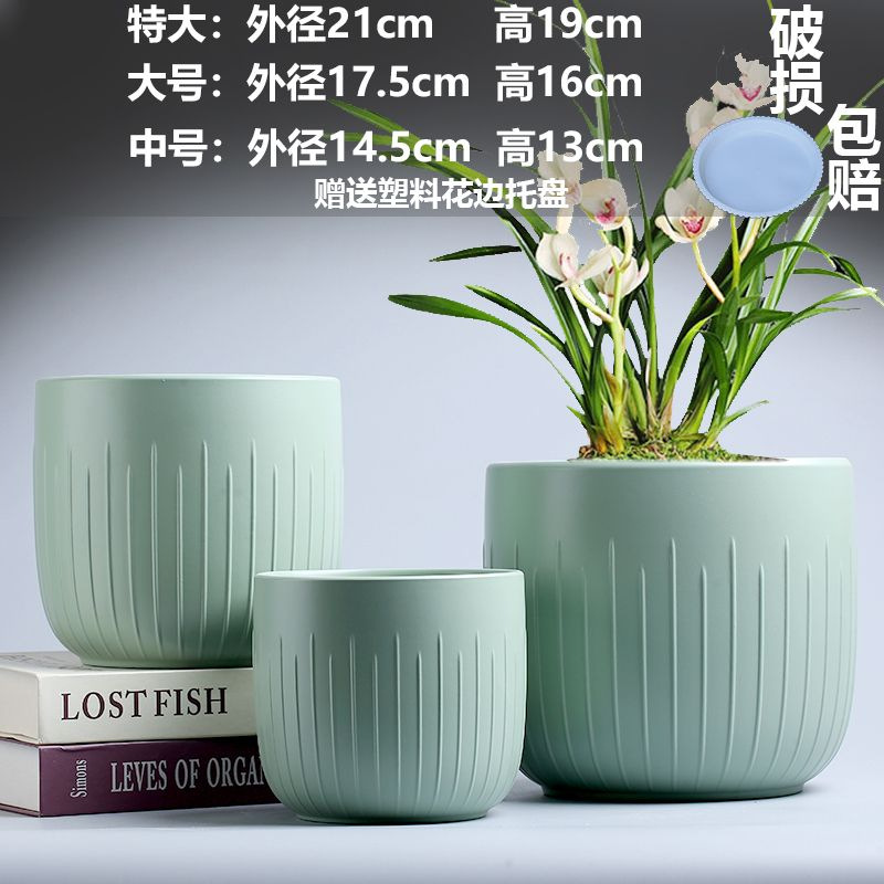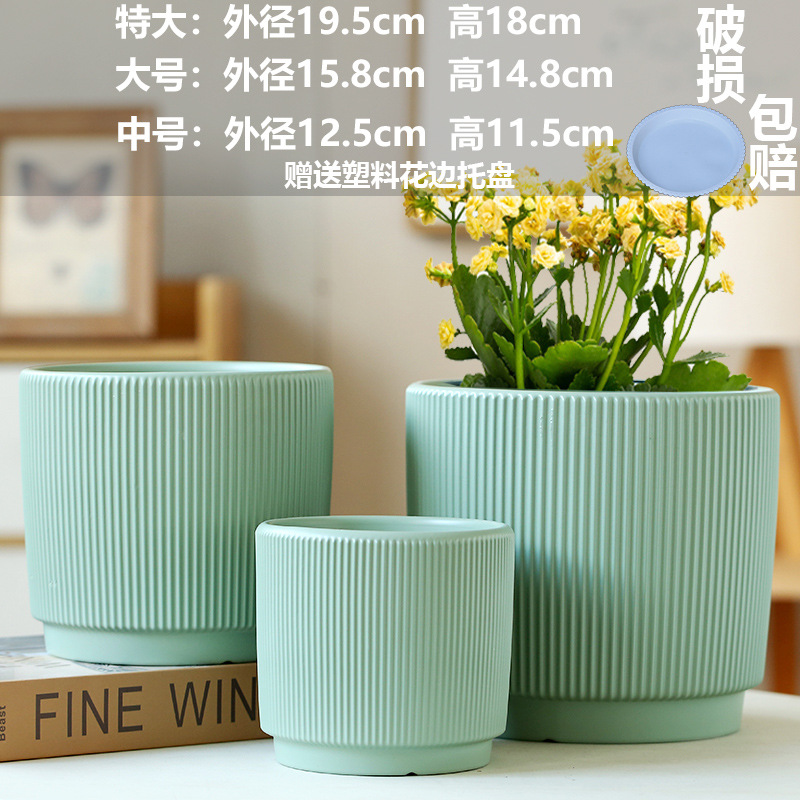 화분 세라믹 도매 드롭 배송 TEMU 라벨링 대형, 중형 및 소형 직경 트레이 가정용 통기성 녹색 식물 화분