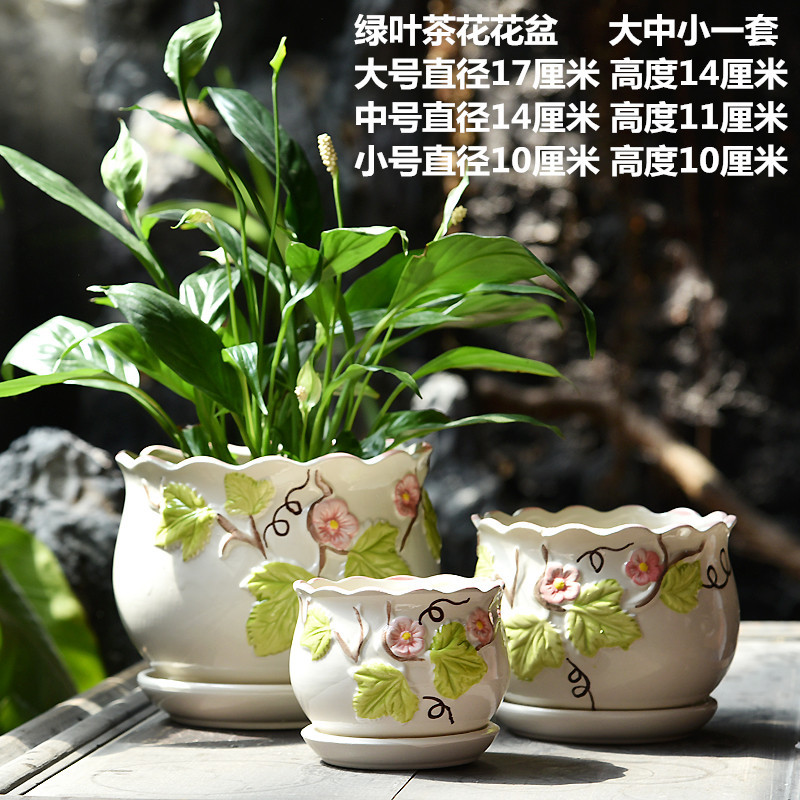 화분 세라믹 도매 드롭 배송 TEMU 라벨링 대형, 중형 및 소형 직경 트레이 가정용 통기성 녹색 식물 화분스토어 가기