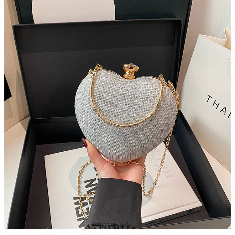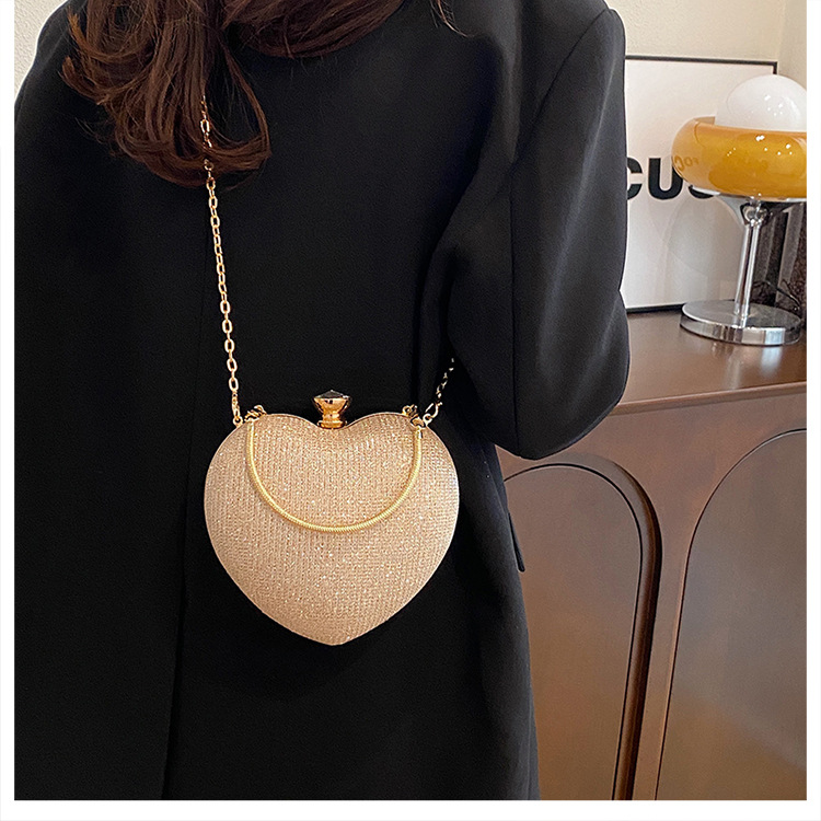 새로운 한국 스타일 어깨 하트 모양의 가방 틈새 체인 휴대용 크로스 바디 백 하이 엔드 이브닝 백 여성 체인 백스토어 가기