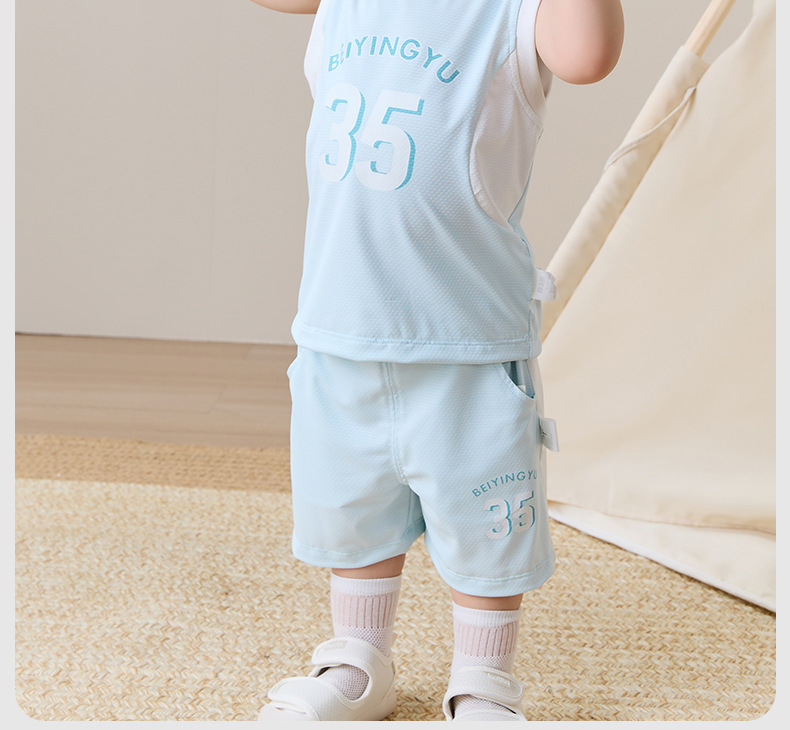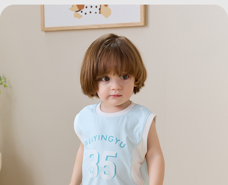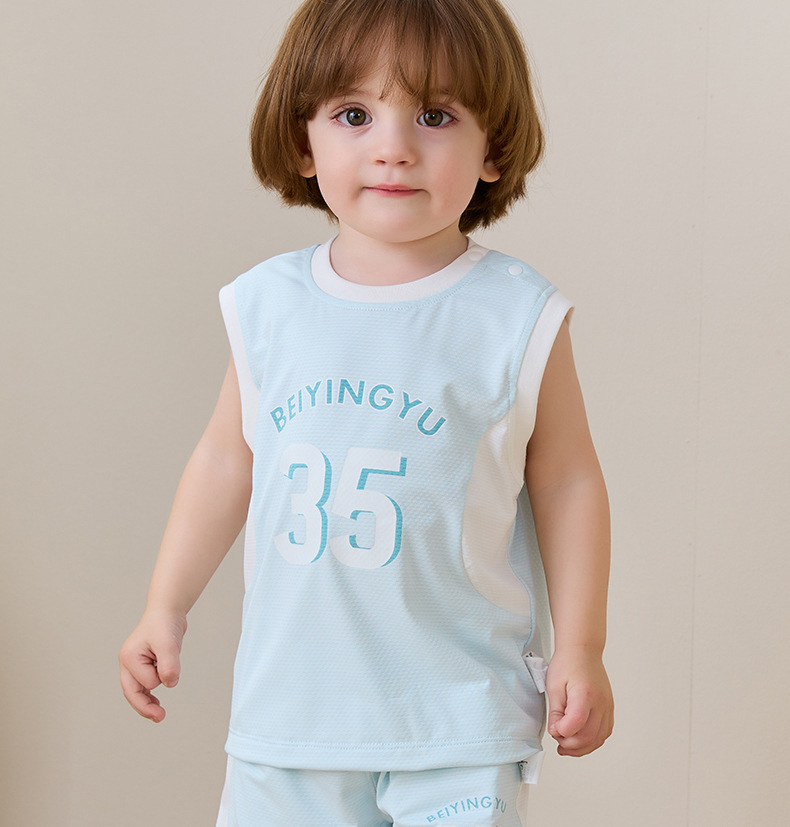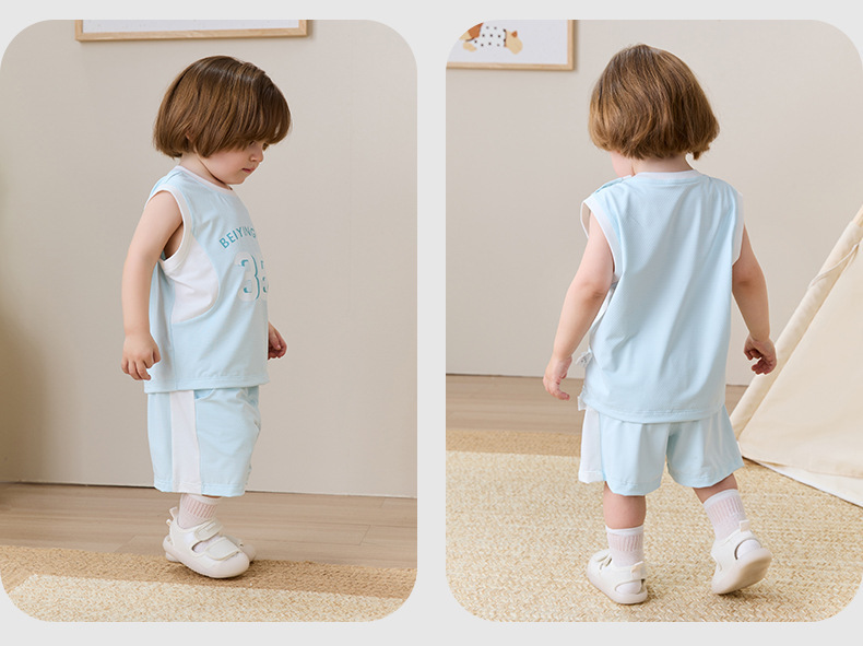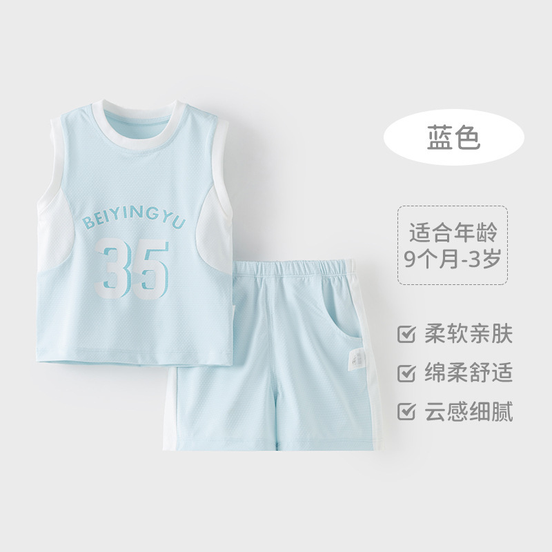 아기 옷 여름 얇은 아기 태양 보호 양복 아기 소년 민소매 조끼 반바지 투피스 세트 아기 여름 옷스토어 가기