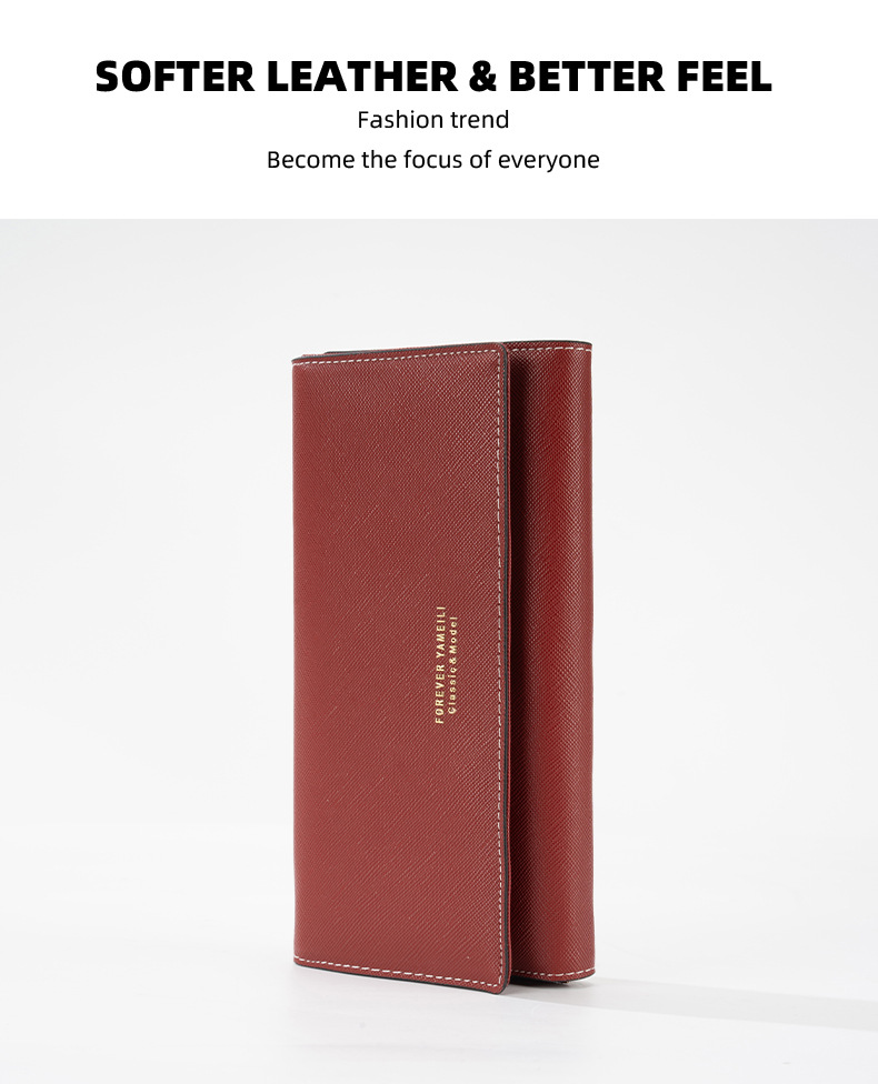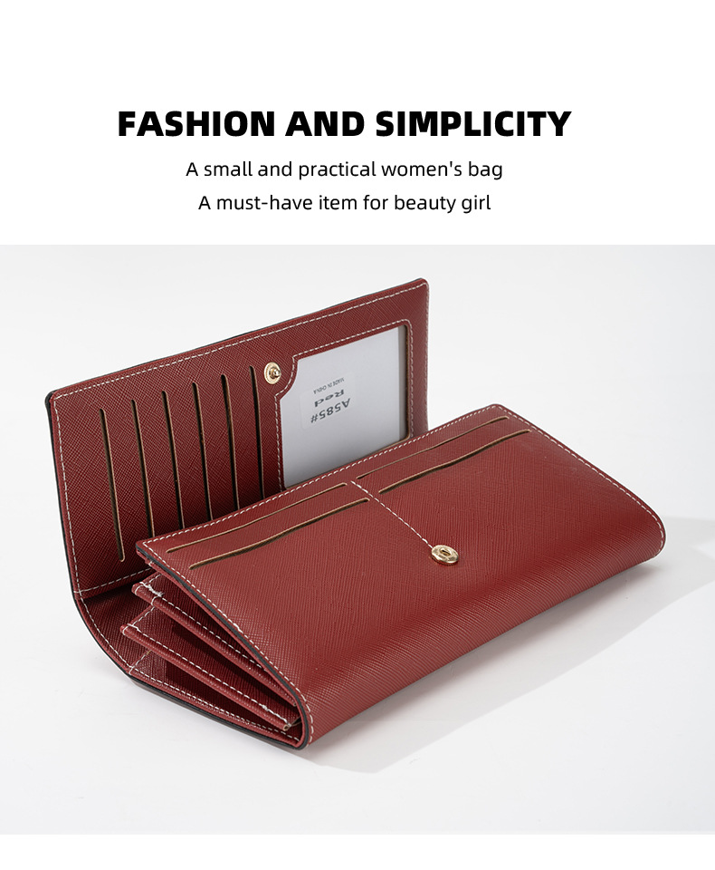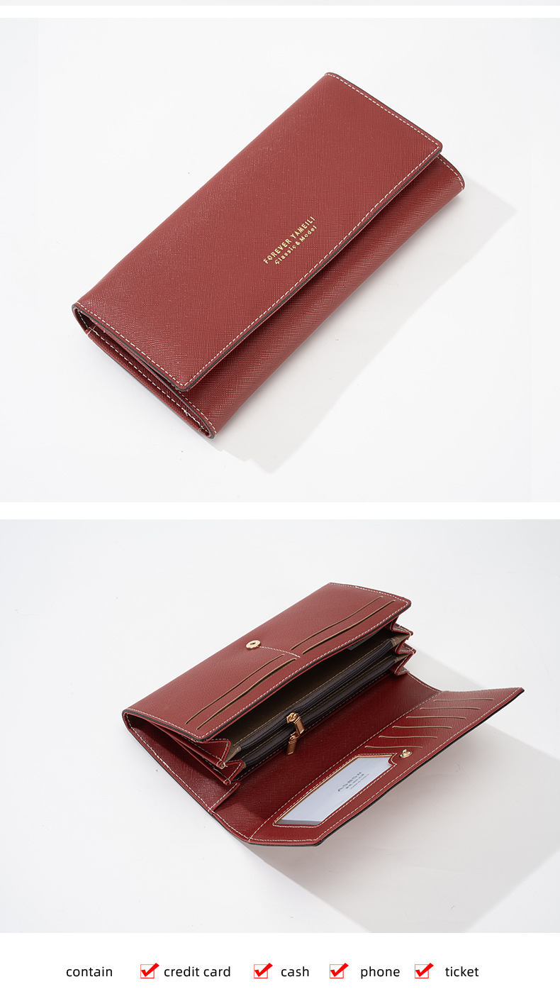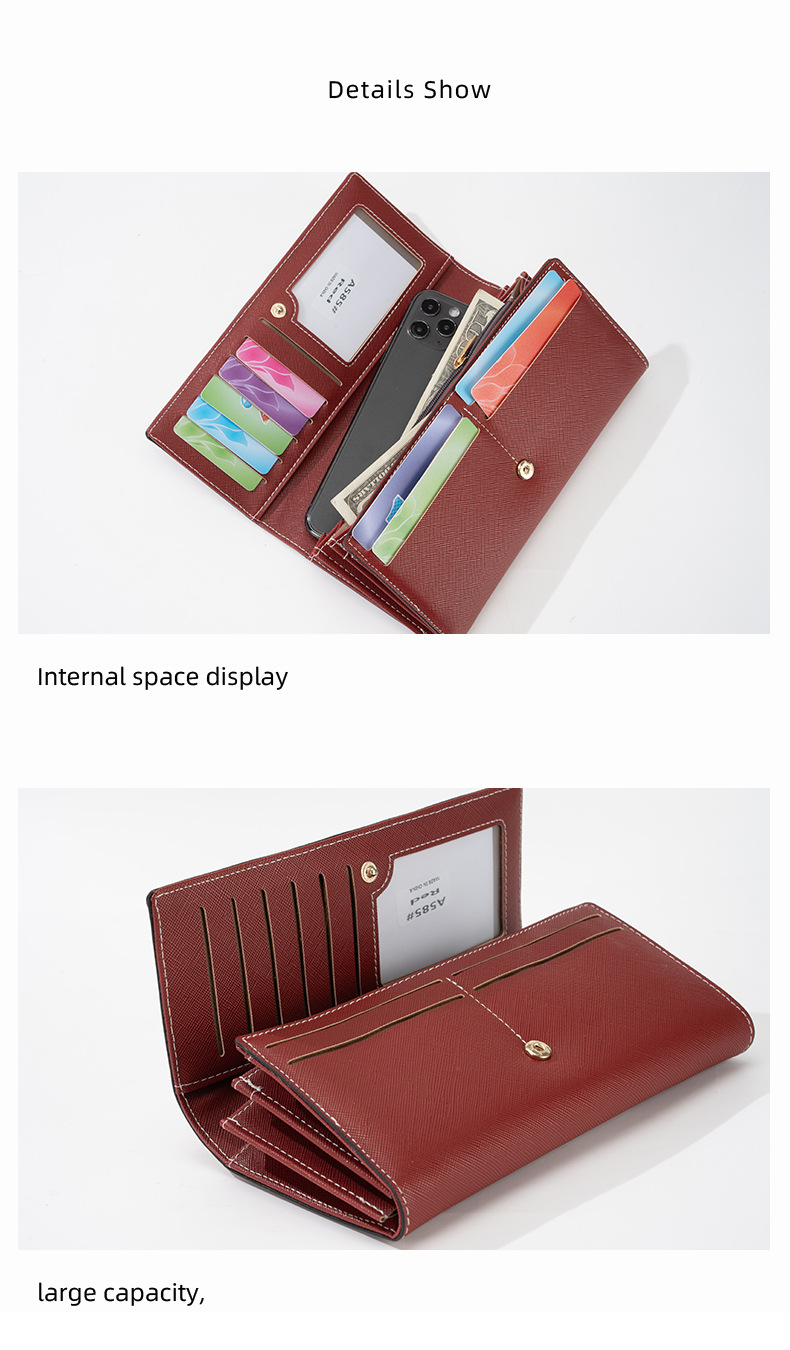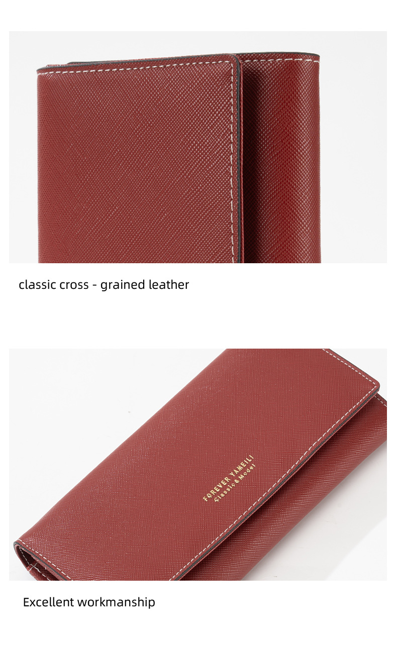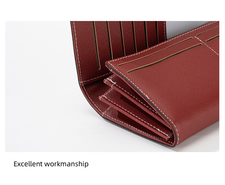RFID 도난 방지 2025 새로운 중간 길이 여성용 솔리드 컬러 크로스 패턴 지갑 일본 및 한국 지폐 위치 클러치 백