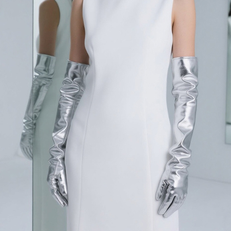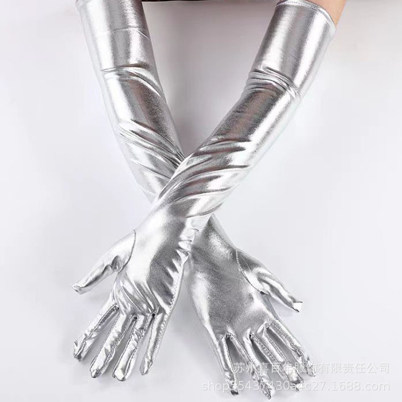 국경 간 축제 댄스 공연 섹시한 특허 가죽 긴 팔꿈치 섹시한 모조 가죽 장갑 다섯 손가락 검정색 빨간색 실버 회색 여성스토어 가기