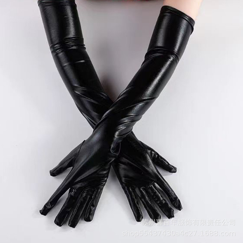 국경 간 축제 댄스 공연 섹시한 특허 가죽 긴 팔꿈치 섹시한 모조 가죽 장갑 다섯 손가락 검정색 빨간색 실버 회색 여성