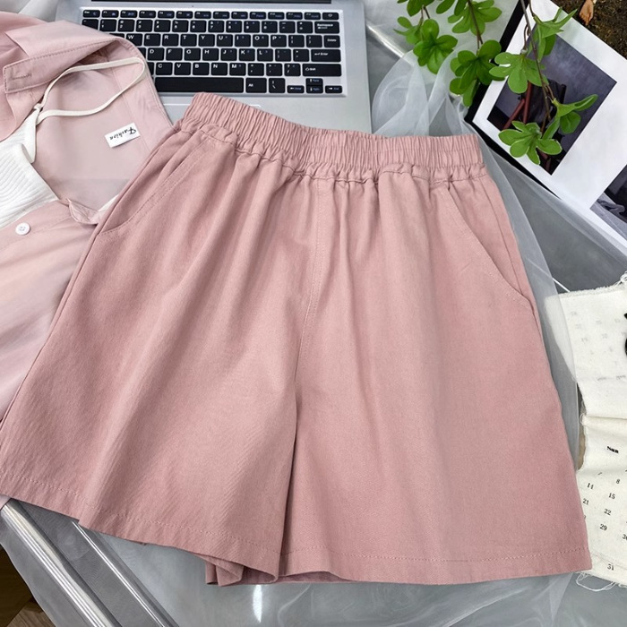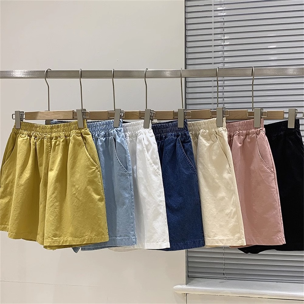 워시 코튼 스포츠 와이드 다리 반바지 여자 여름 느슨한 얇은 높은 허리 슬리밍 올 매치 아우터 착용 A 자형 3 점 바지스토어 가기