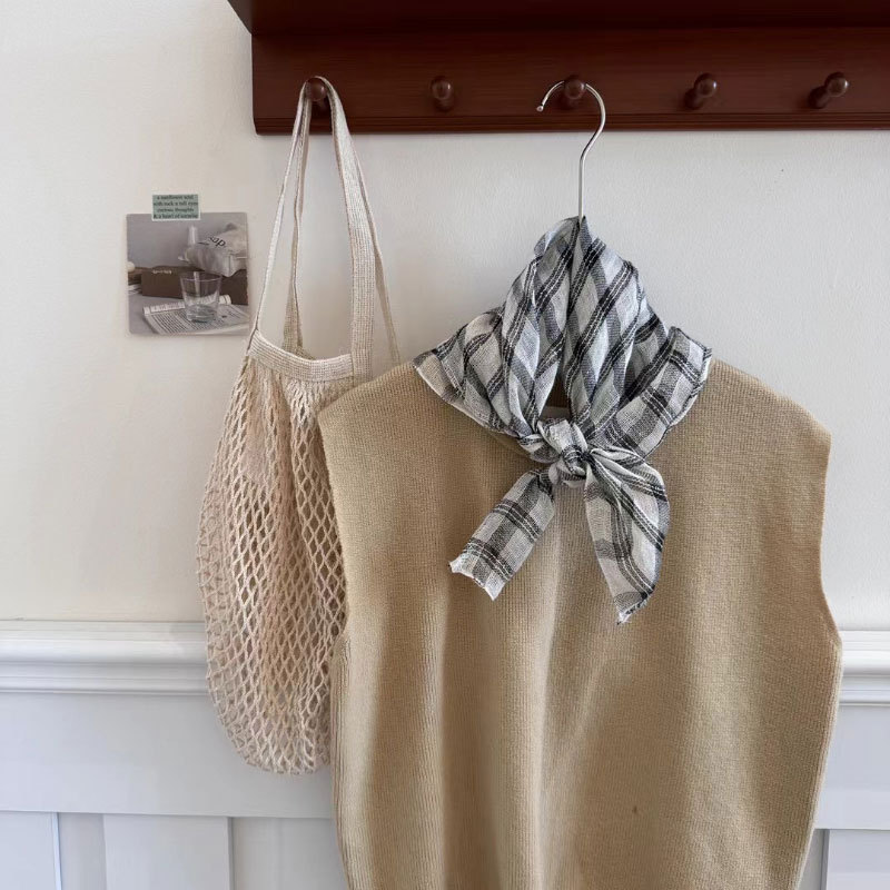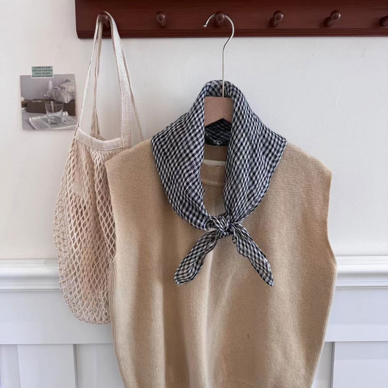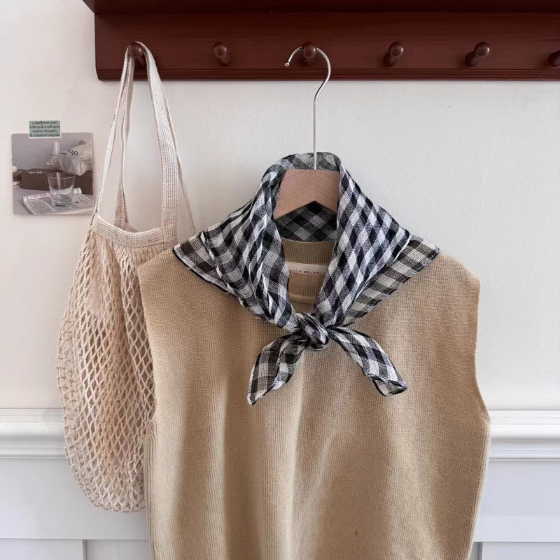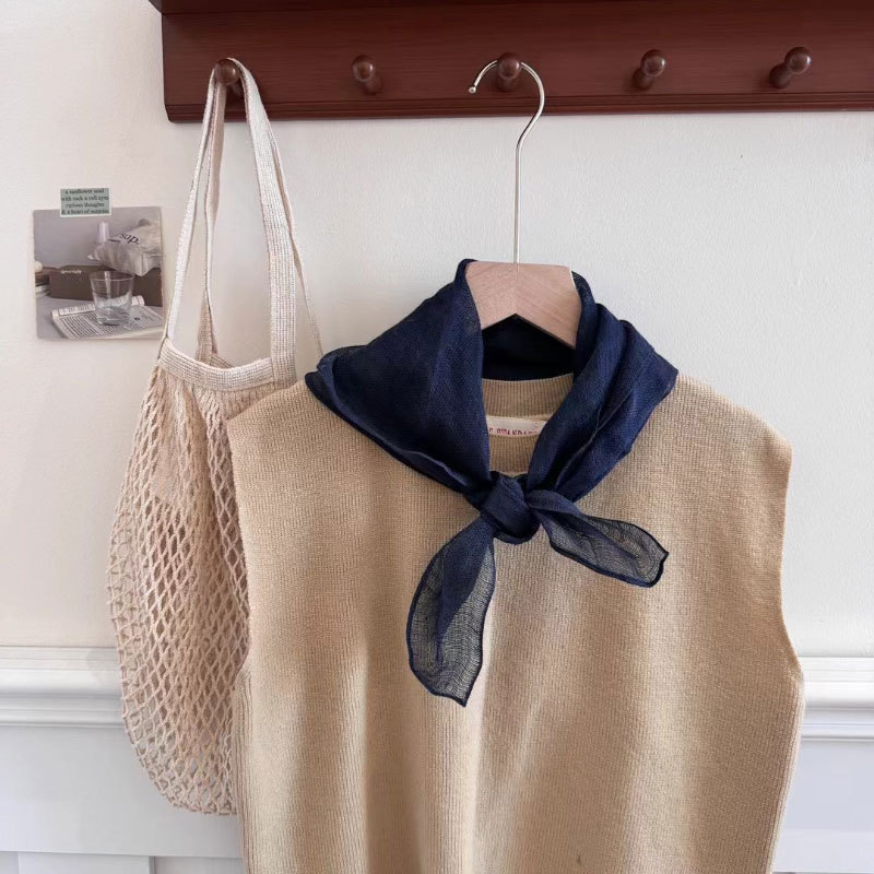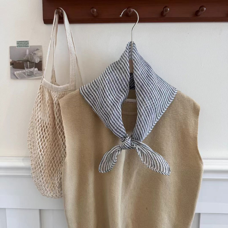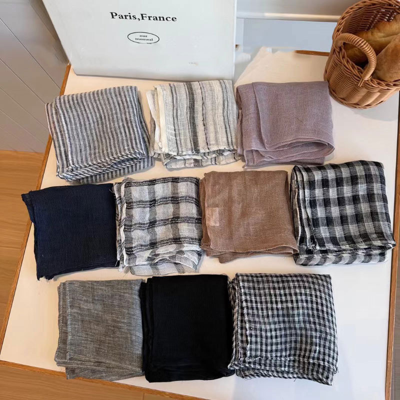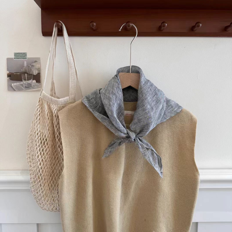 2025 일본식 린넨 작은 광장 스카프 봄과 여름 목 보호 양면 삼각형 스카프 새로운 통기성 예술적 작은 스카프 헤어 벨트스토어 가기