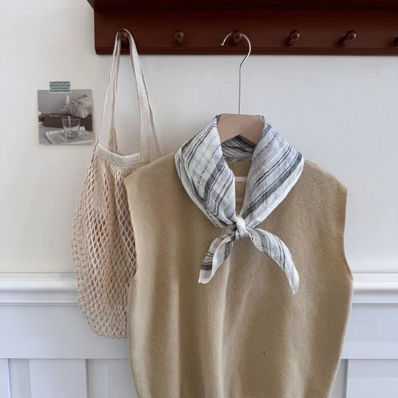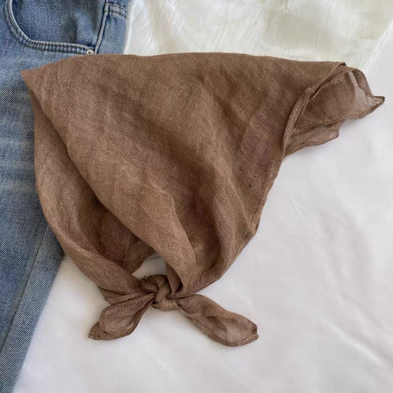 2025 일본식 린넨 작은 광장 스카프 봄과 여름 목 보호 양면 삼각형 스카프 새로운 통기성 예술적 작은 스카프 헤어 벨트