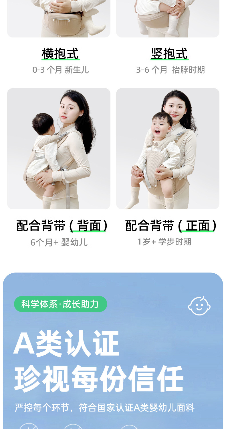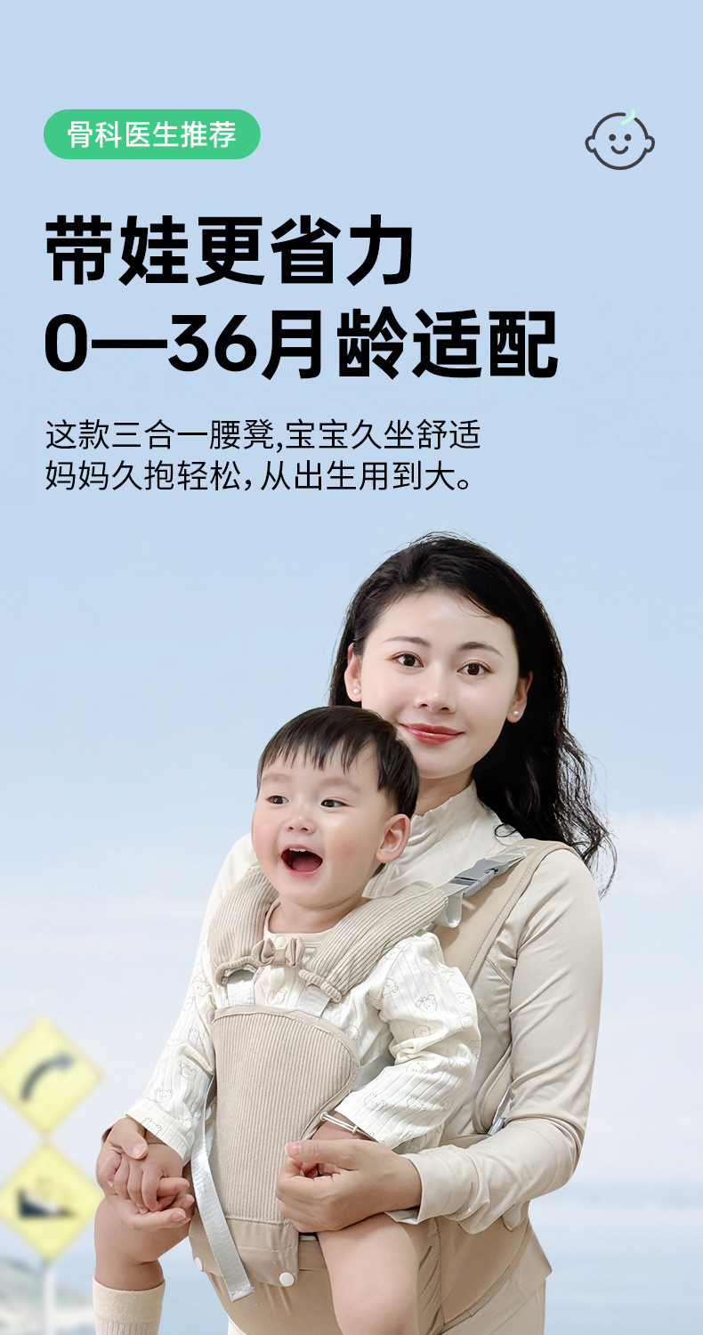아기띠 허리스툴 2-in-1 전후 사용 가능, 경량, 작은 아기의 외출 시 간편한 아기 안고 다니는 도구, 사계절 사용 가능스토어 가기