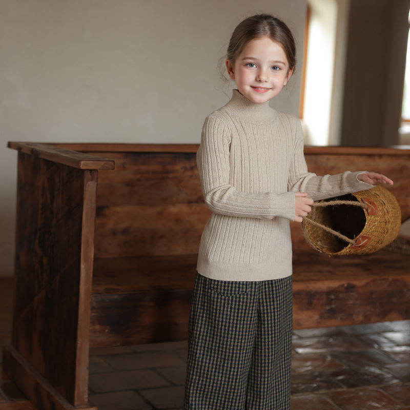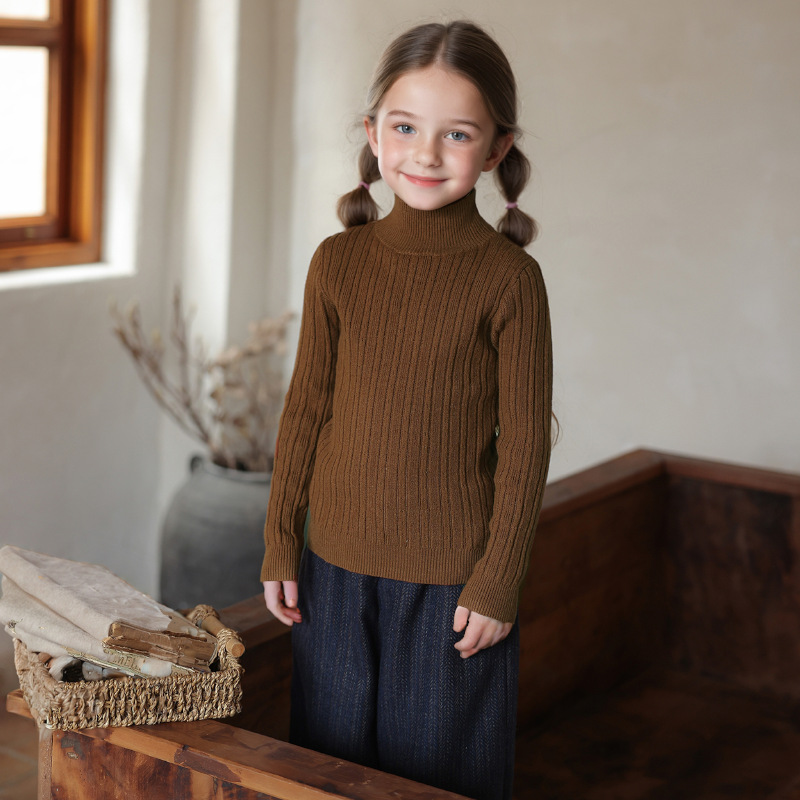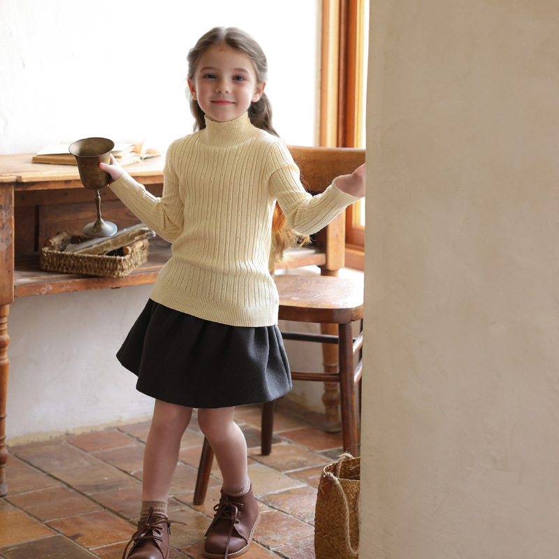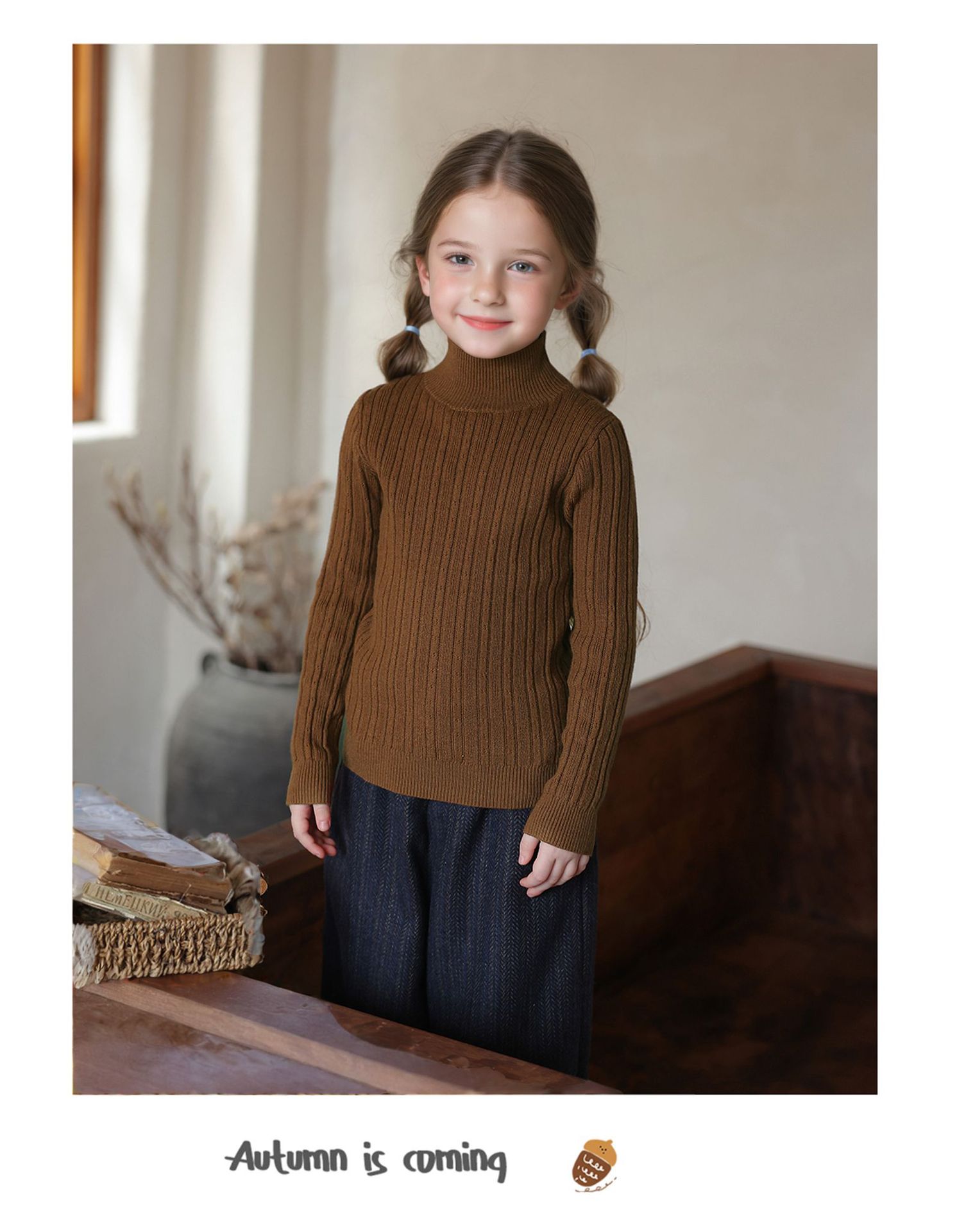 2025 가을 겨울 신상품 여아용 봄 하프 터틀넥 스웨터 아기 니트 스웨터 아동 겨울옷 여아용 베이스 스웨터