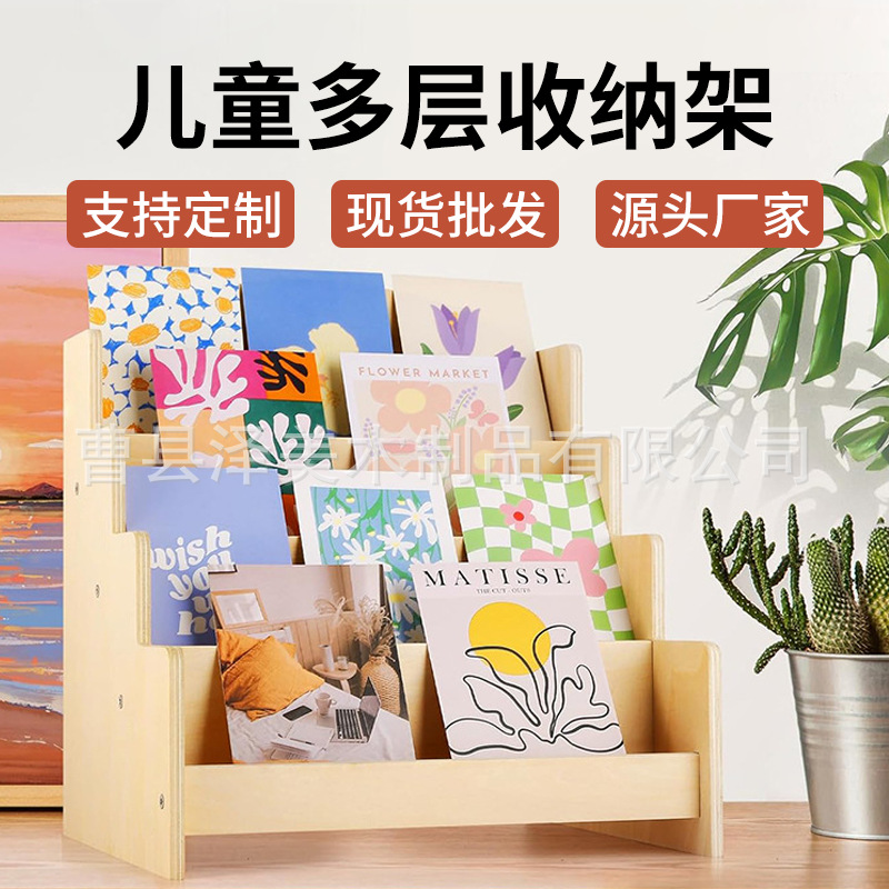 나무 그림책 선반, 어린이 책장, 바닥 스탠딩 수납 선반, 접합 사다리형 데스크탑 화장품 수납 선반