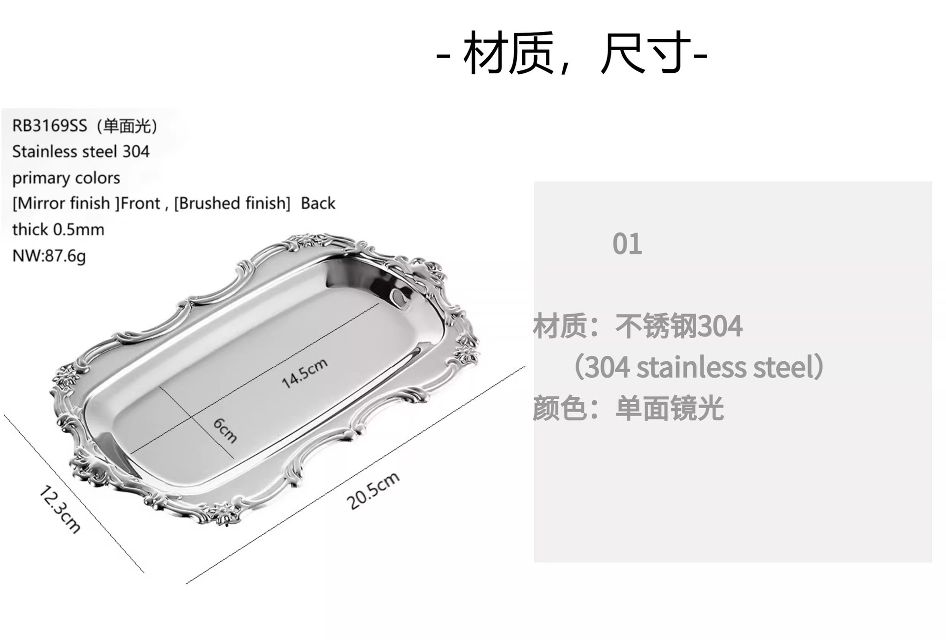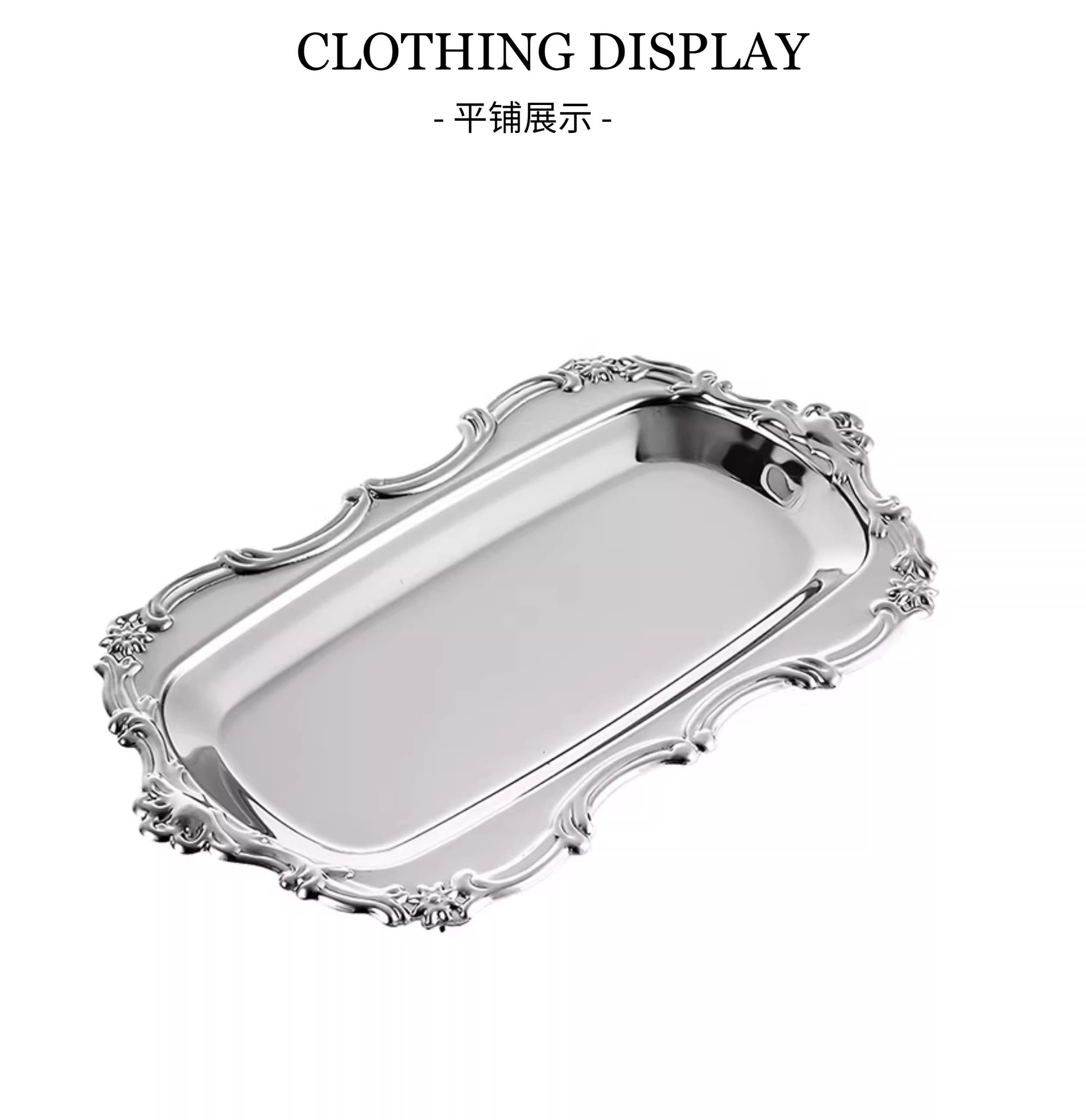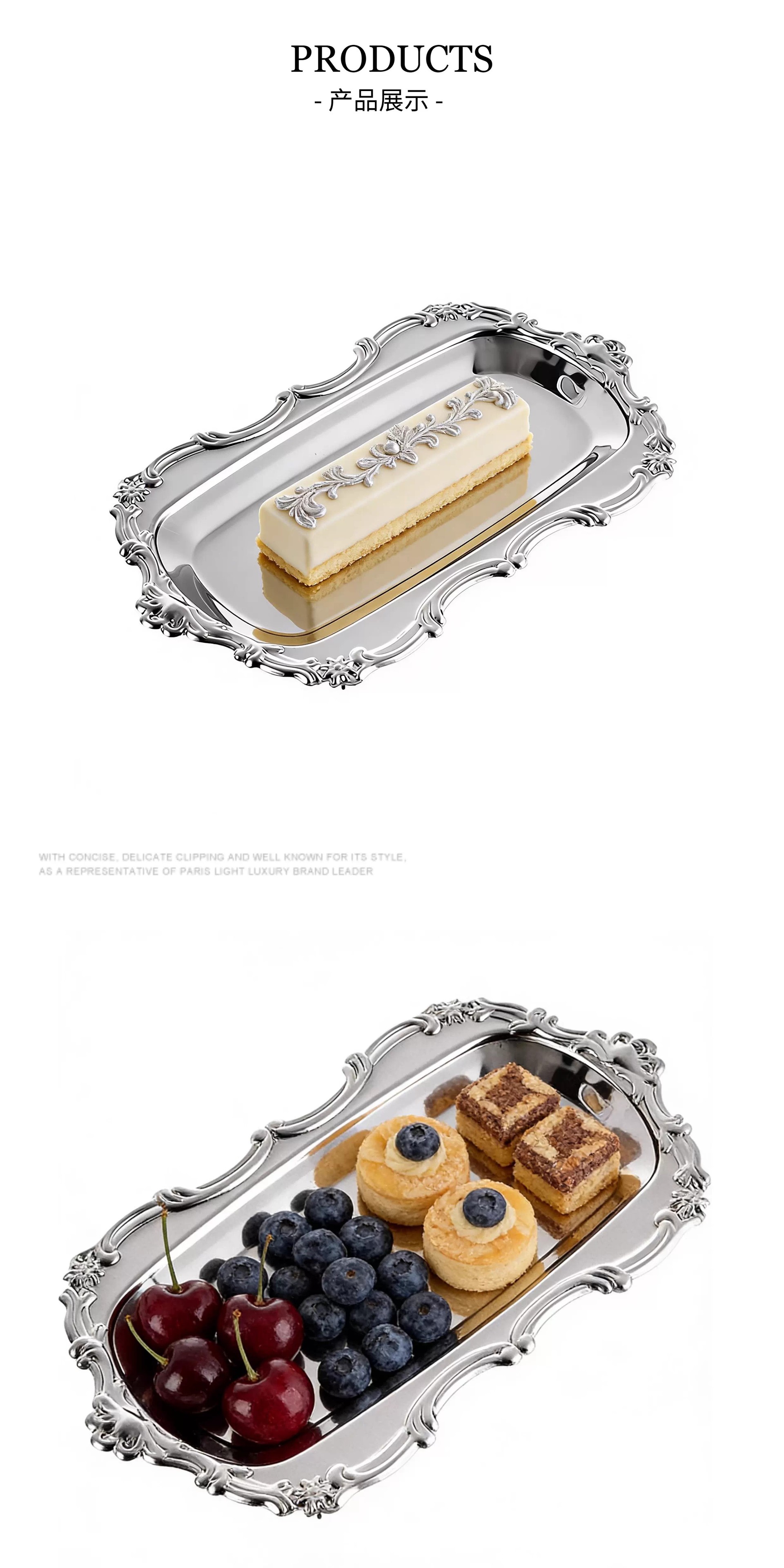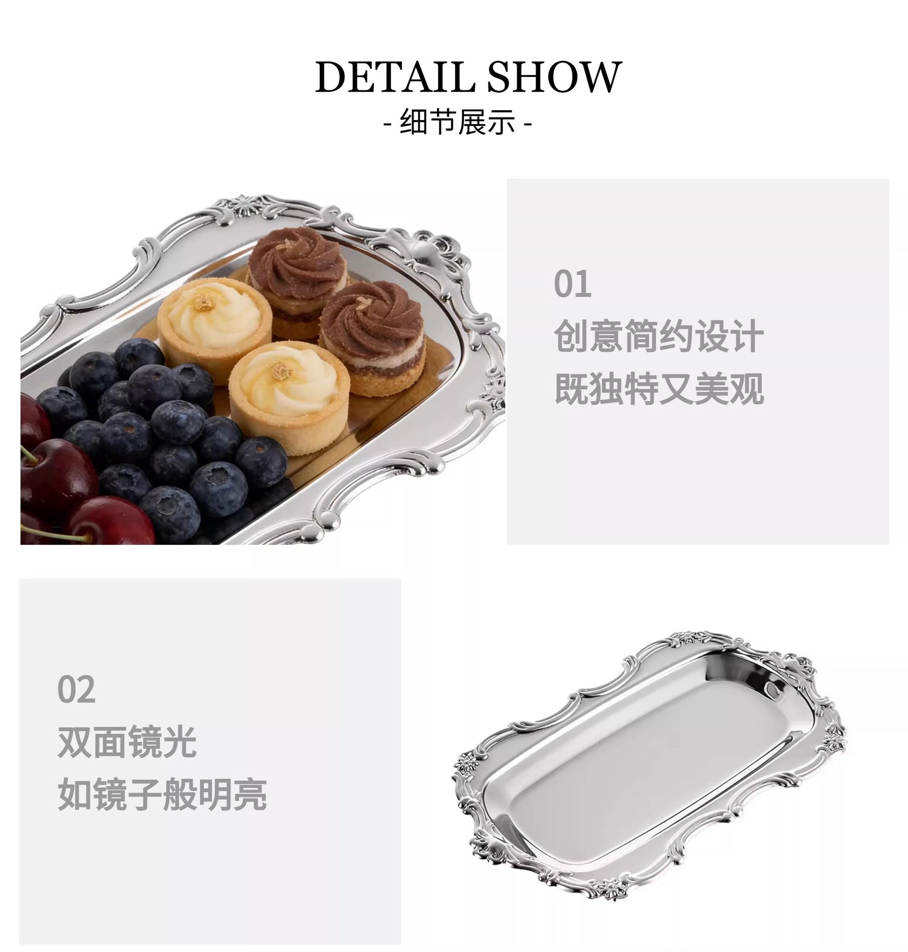유럽 스타일의 가벼운 럭셔리 Ins 스테인레스 스틸 미러 애프터눈 티 케이크 접시 사진 소품 보석 트레이 타월 접시