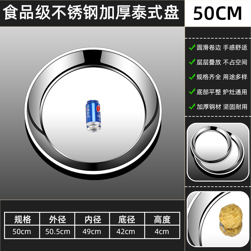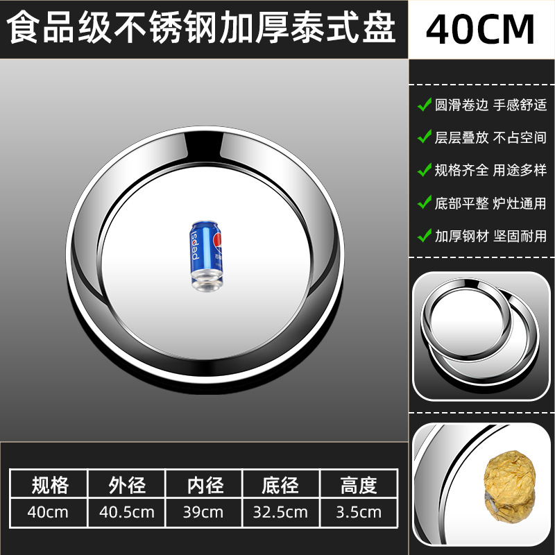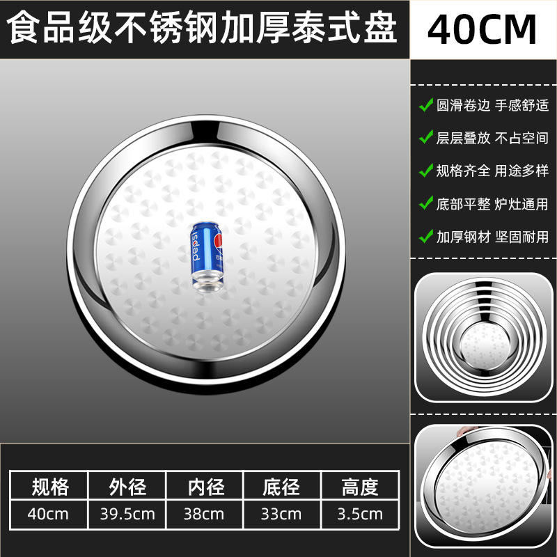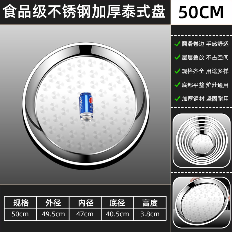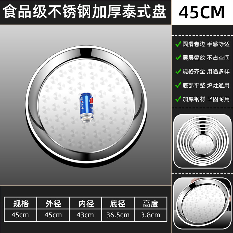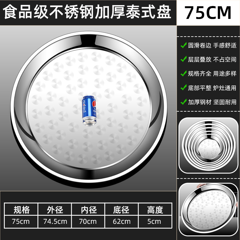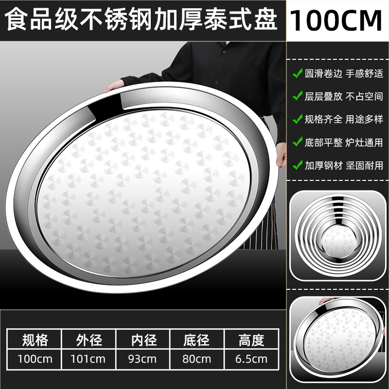 두꺼운 스테인레스 스틸 대형 원형 트레이, 원형 얕은 트레이, 평평한 트레이, 대형 원형 트레이, 상업용 호텔 레스토랑 다용도스토어 가기
