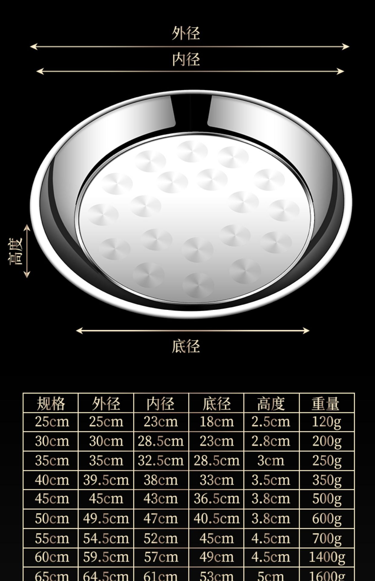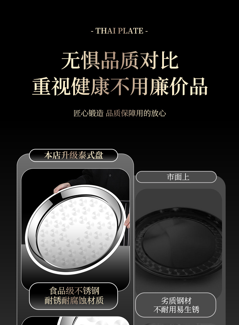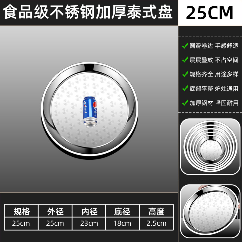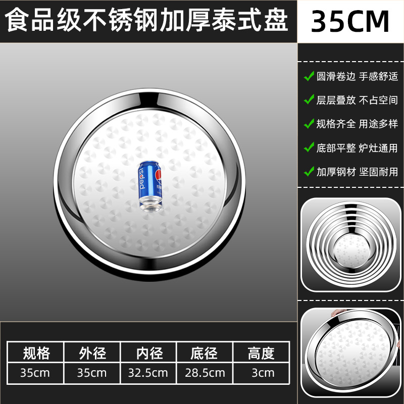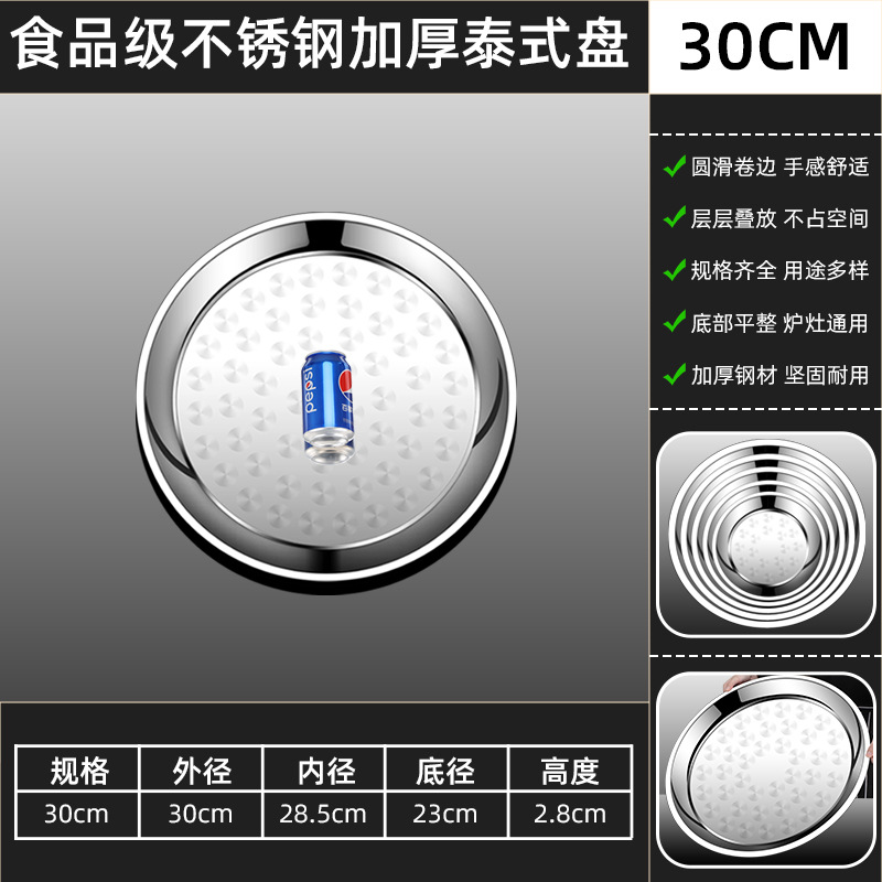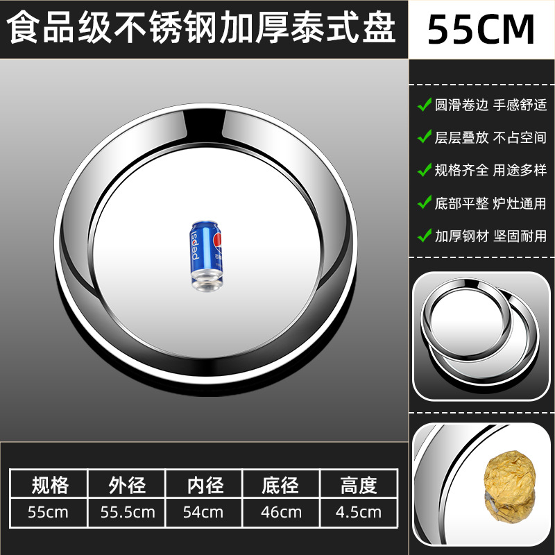 두꺼운 스테인레스 스틸 대형 원형 트레이, 원형 얕은 트레이, 평평한 트레이, 대형 원형 트레이, 상업용 호텔 레스토랑 다용도스토어 가기