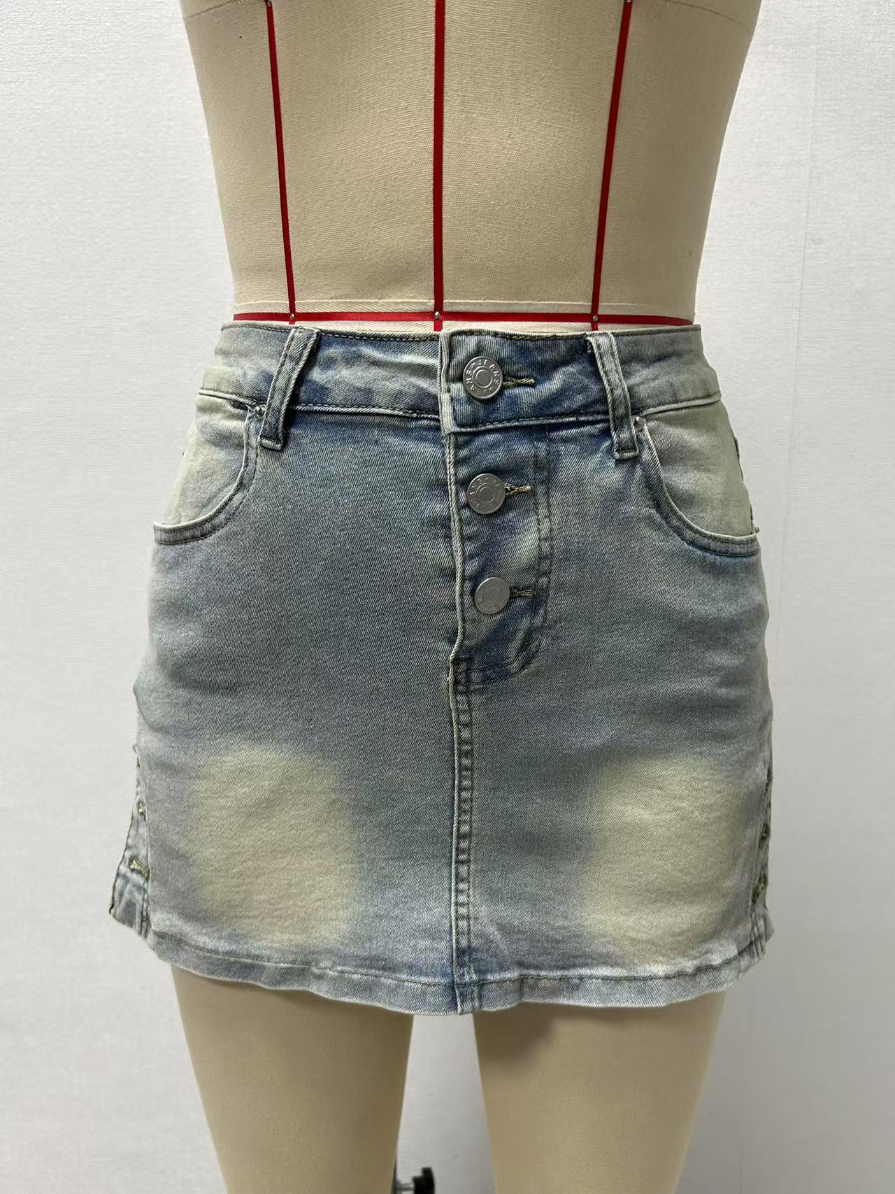 국경 간 전자 상거래 유럽과 미국 스타일 2025 새로운 섹시한 뜨거운 소녀 데님 스커트 여름 고탄성 힙 스커트 미니 스커트스토어 가기