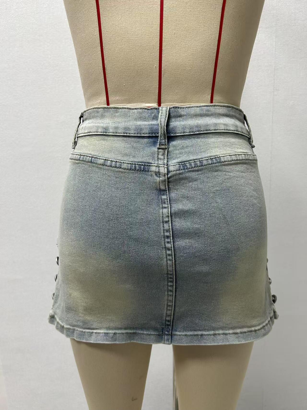 국경 간 전자 상거래 유럽과 미국 스타일 2025 새로운 섹시한 뜨거운 소녀 데님 스커트 여름 고탄성 힙 스커트 미니 스커트