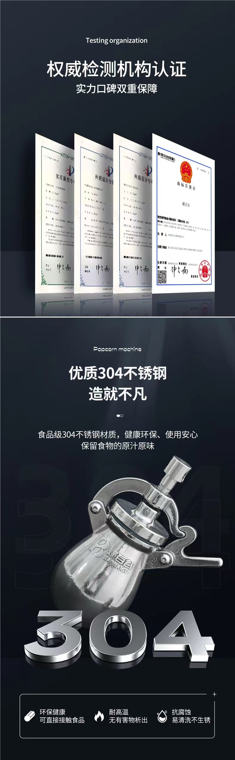 304 스테인레스 스틸 가정용 미니 팝콘 기계 곡물 증폭기 곡물 fengdeng 팝콘 기계 작은 가구스토어 가기