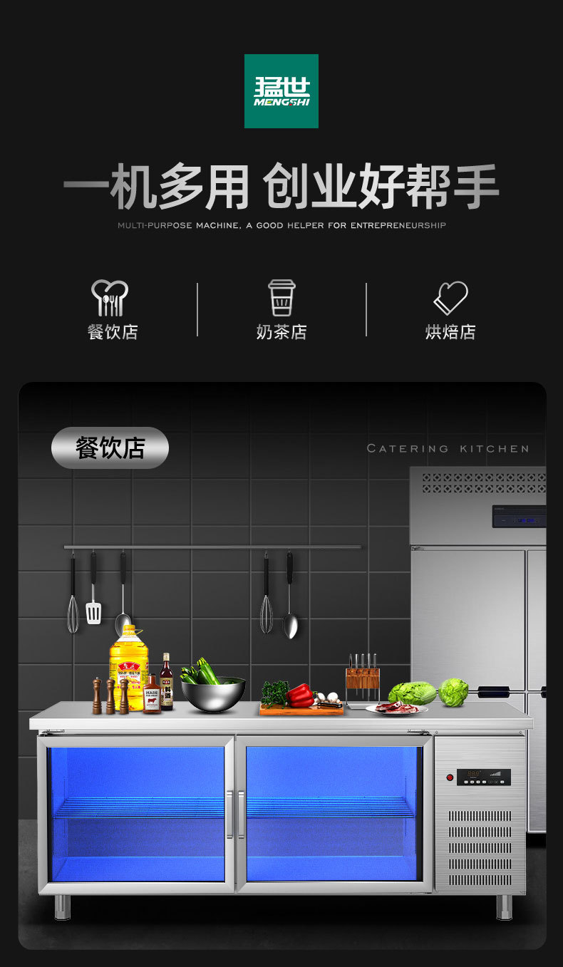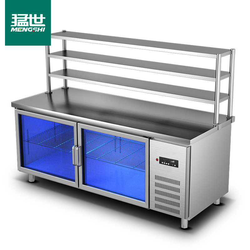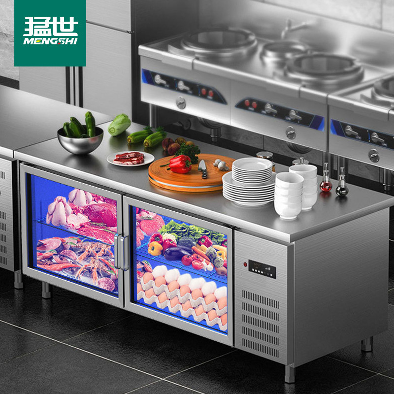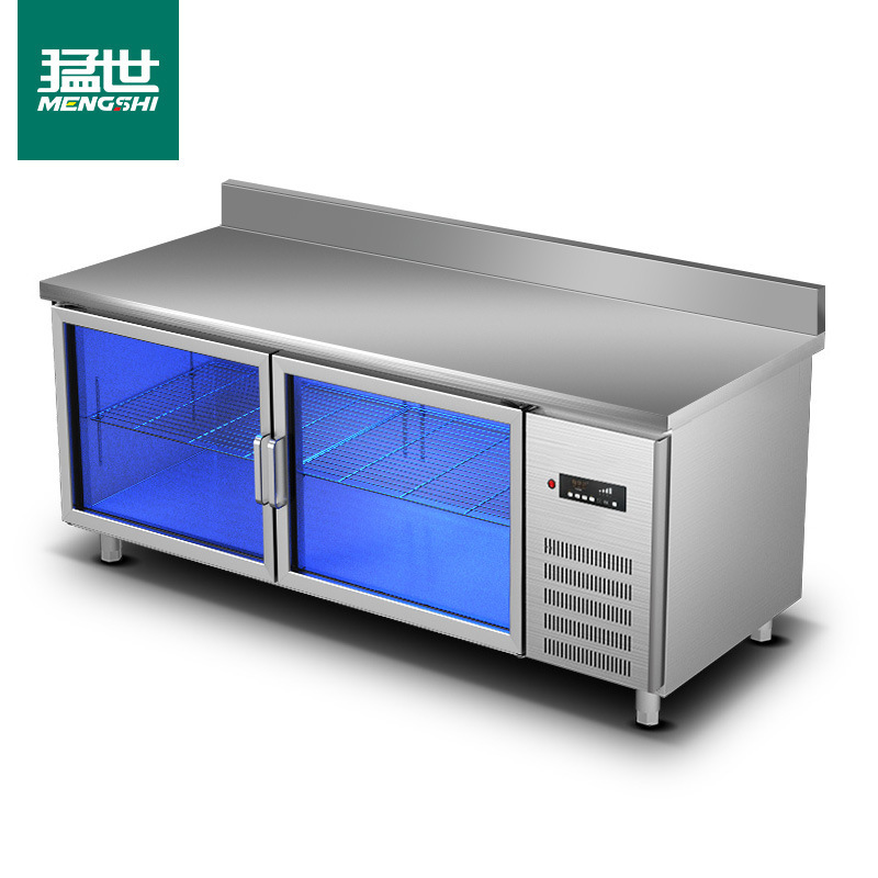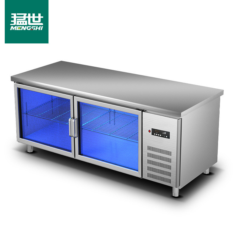 Mengshi 냉장 냉동 신선한 유지 작업대 상업용 스테인레스 스틸 플랫 냉동고 냉장고 주방 냉동 냉장고 콘솔스토어 가기