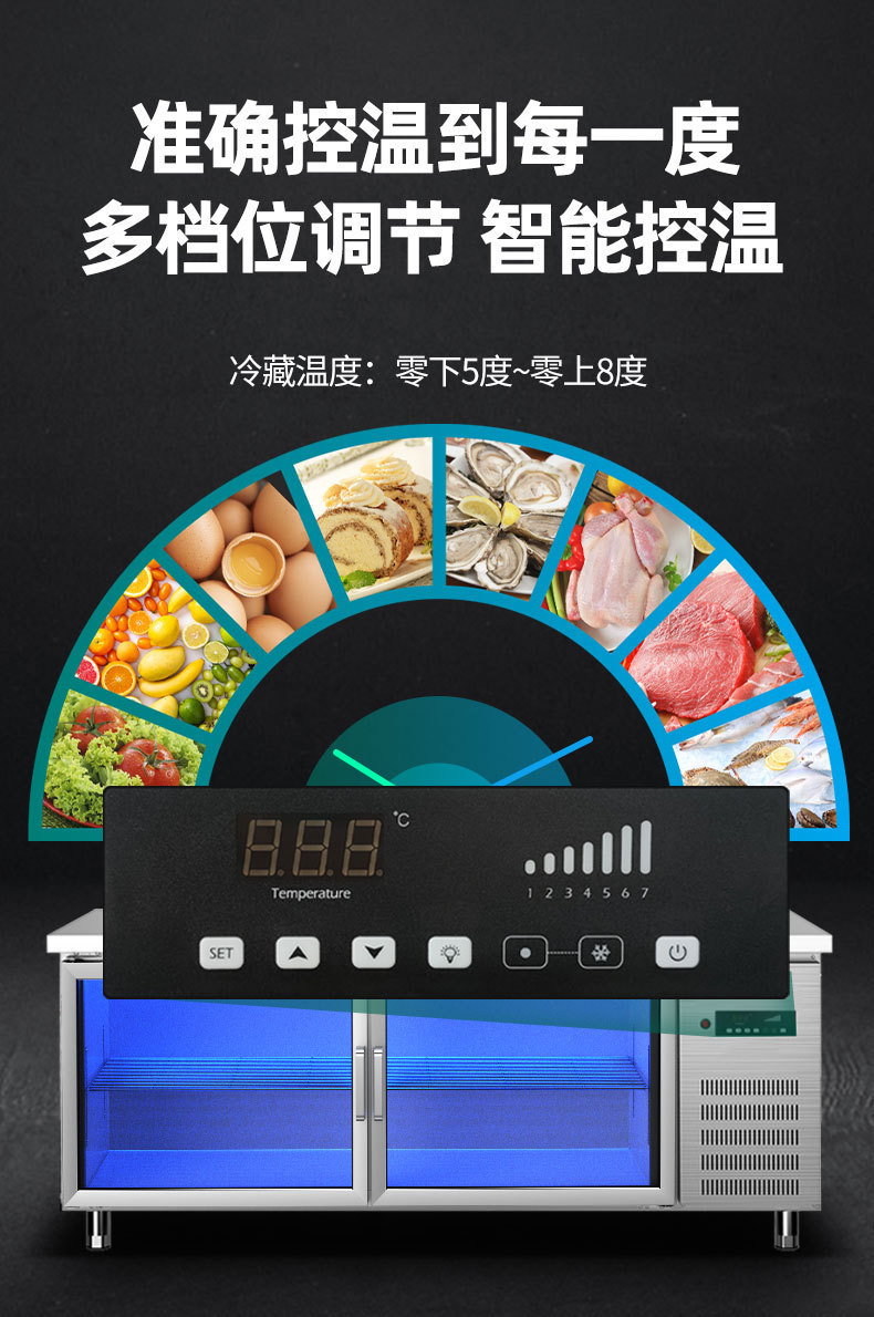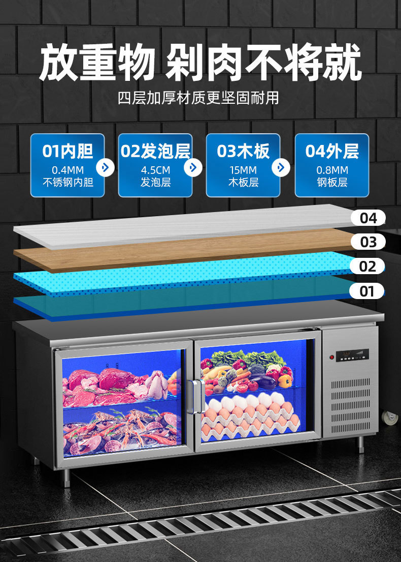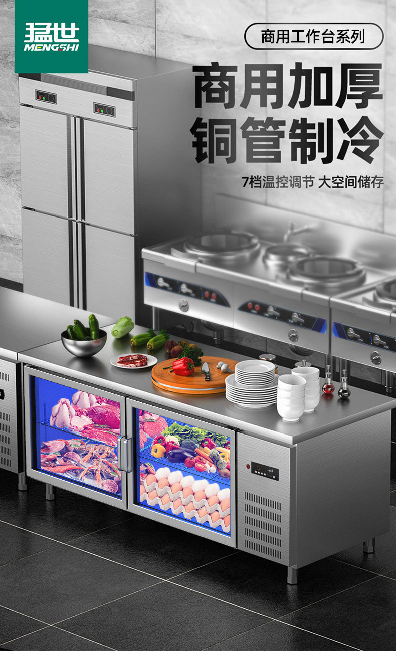 Mengshi 냉장 냉동 신선한 유지 작업대 상업용 스테인레스 스틸 플랫 냉동고 냉장고 주방 냉동 냉장고 콘솔스토어 가기