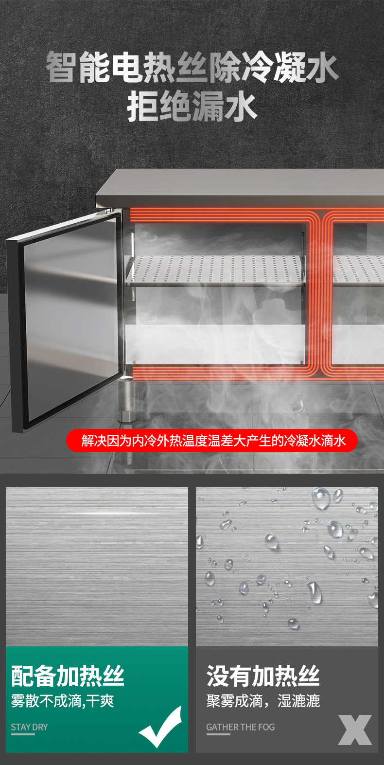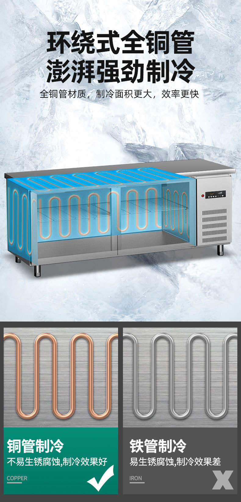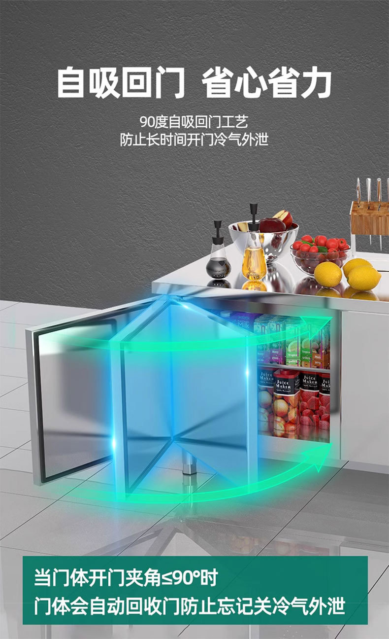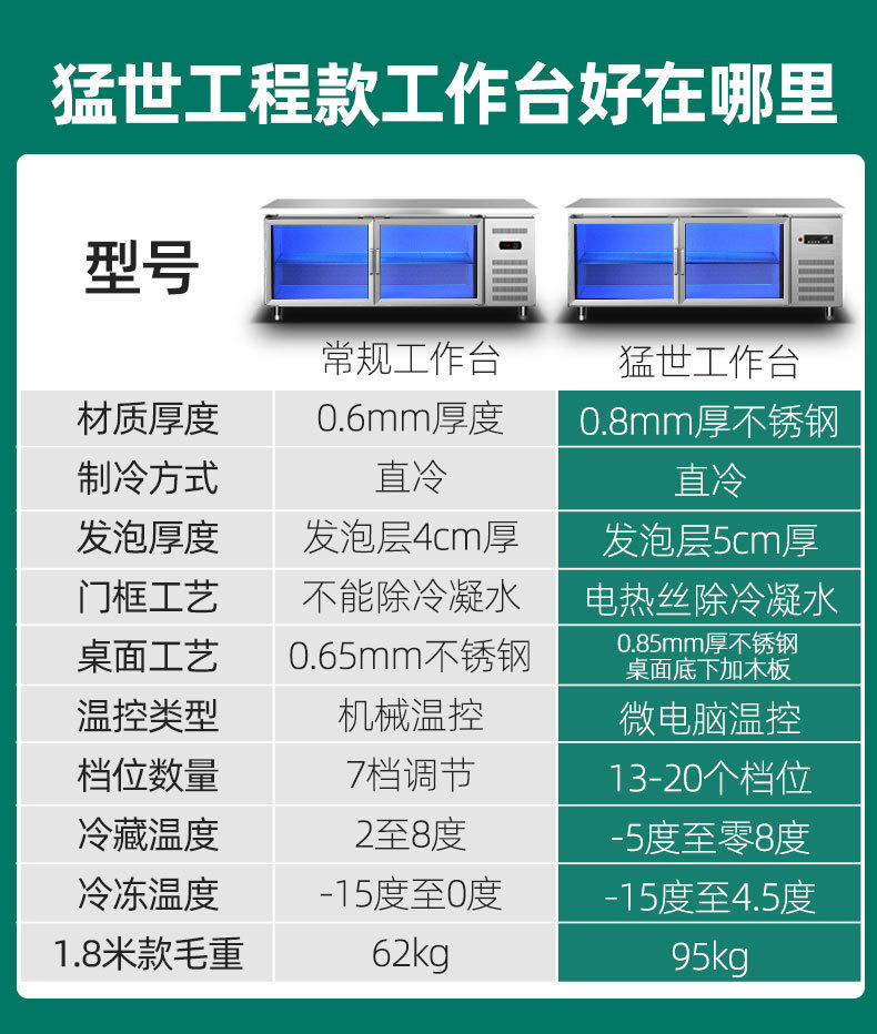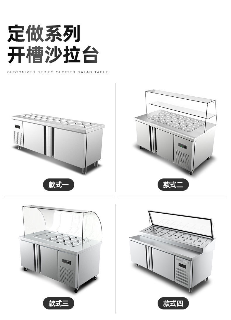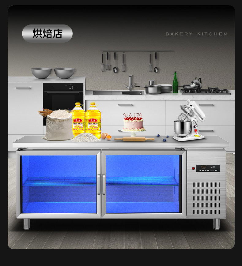 Mengshi 냉장 냉동 신선한 유지 작업대 상업용 스테인레스 스틸 플랫 냉동고 냉장고 주방 냉동 냉장고 콘솔