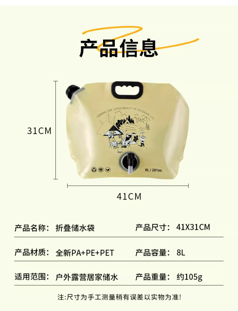 야외 휴대용 접이식 물 가방 등산 여행 캠핑 플라스틱 연수 저장 가방 물 버킷 대용량 물 저장 가방스토어 가기