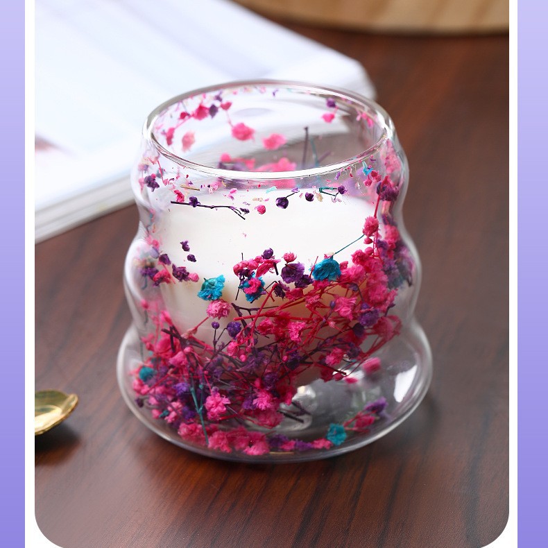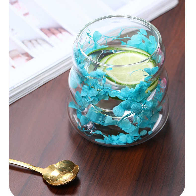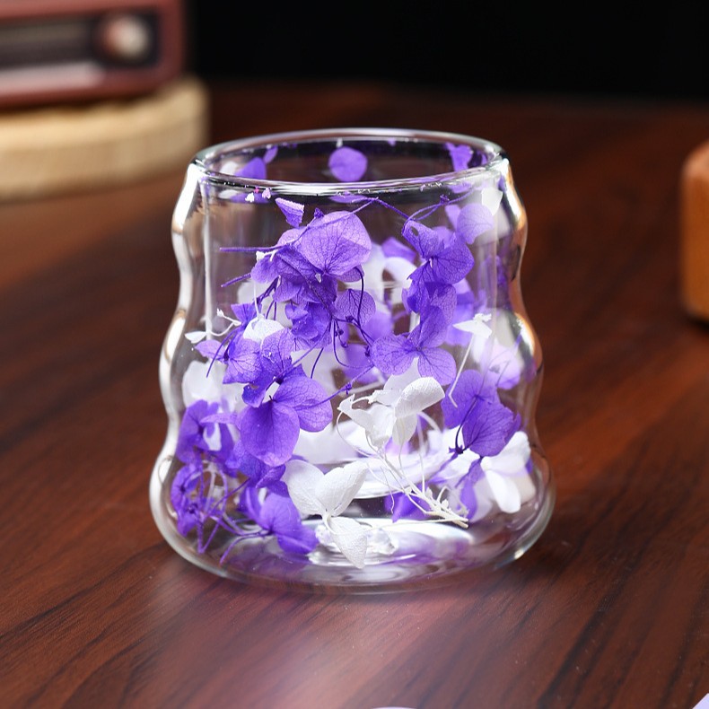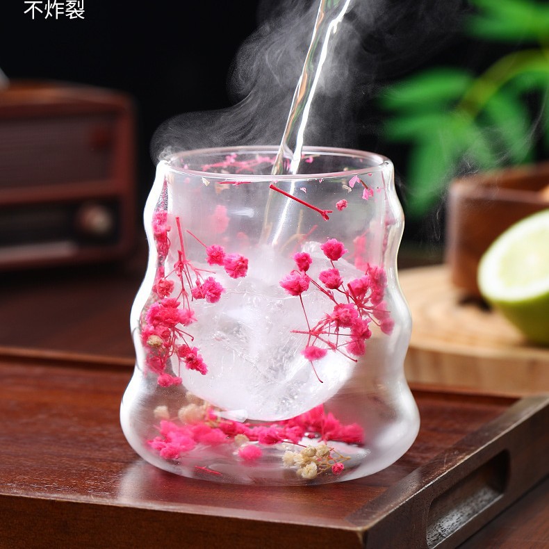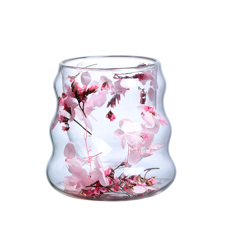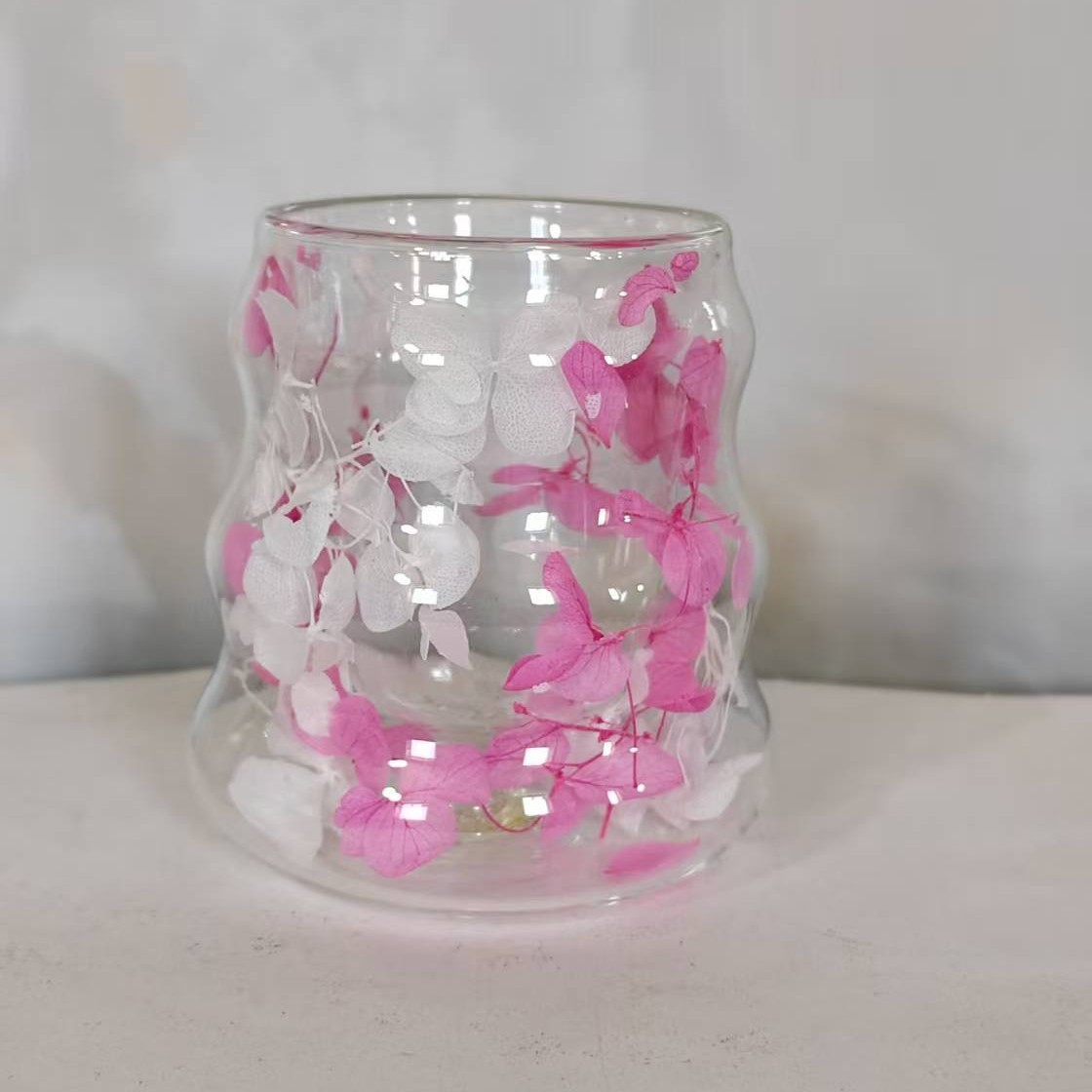 국경 간 새로운 인터넷 연예인 리얼 플라워 더블 레이어 유리 높은 색상 가치와 함께 선물 커피 컵 붕규산 간단한 컵