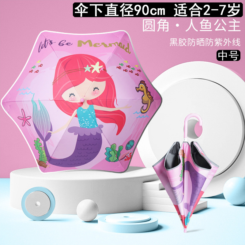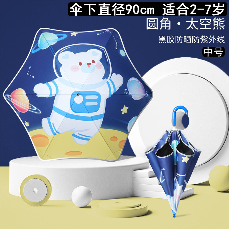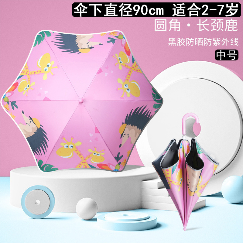 만화 어린이 우산 직선형 둥근 모서리 안티 스터치 안전 유치원 소년과 소녀 초등학교 긴 손잡이 경량 우산