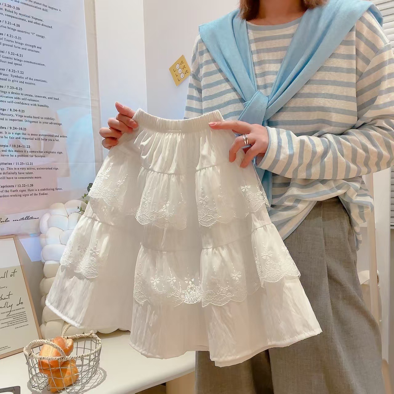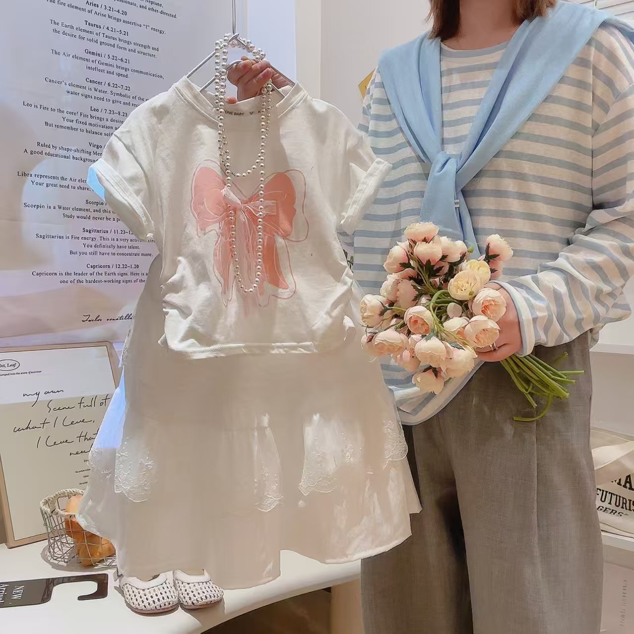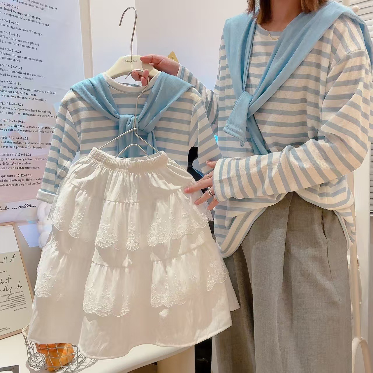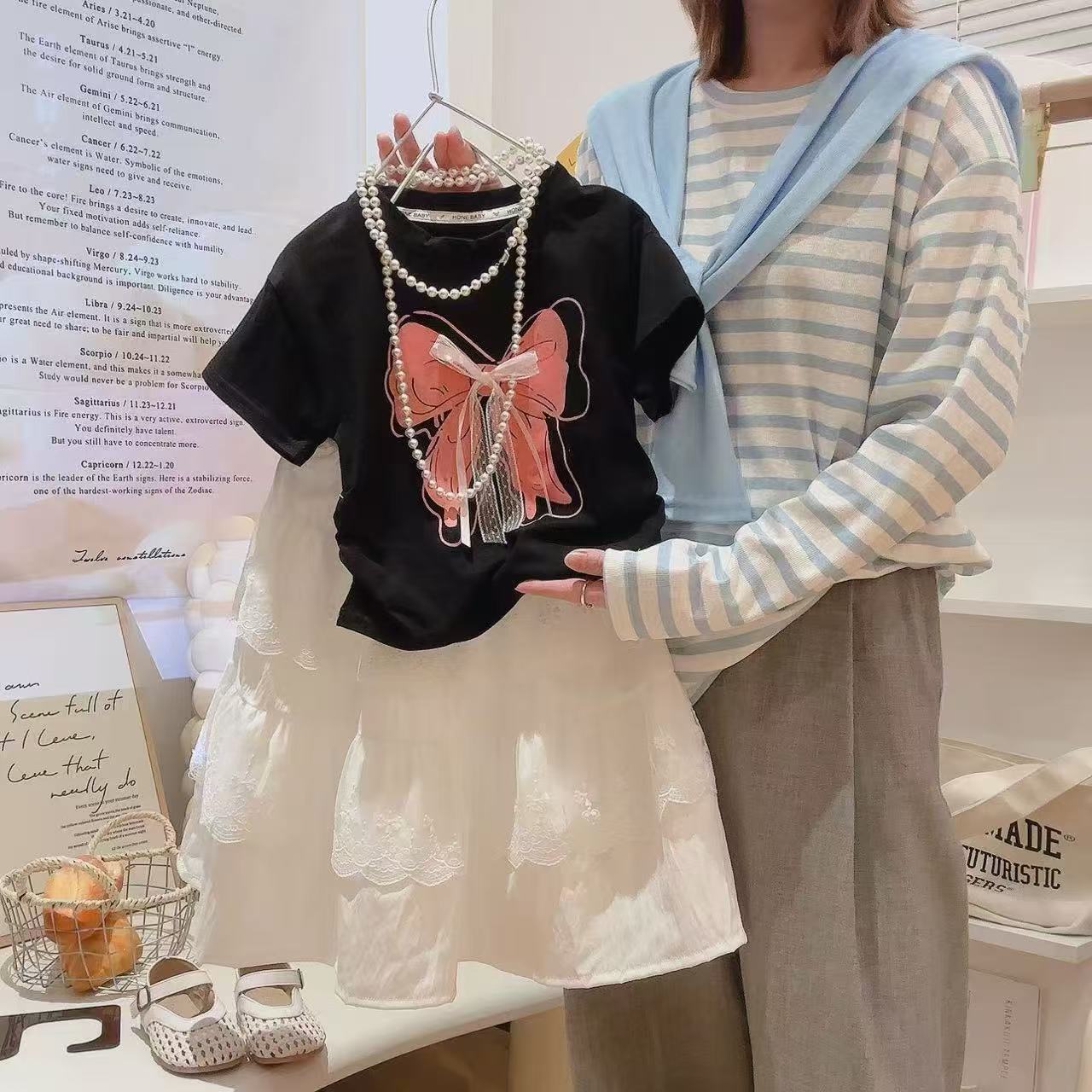 너무 아름다워 ~ 여름 여자 2025 새로운 티셔츠 케이크 스커트 세트 웨스턴 레이스 스티칭 긴 스커트스토어 가기