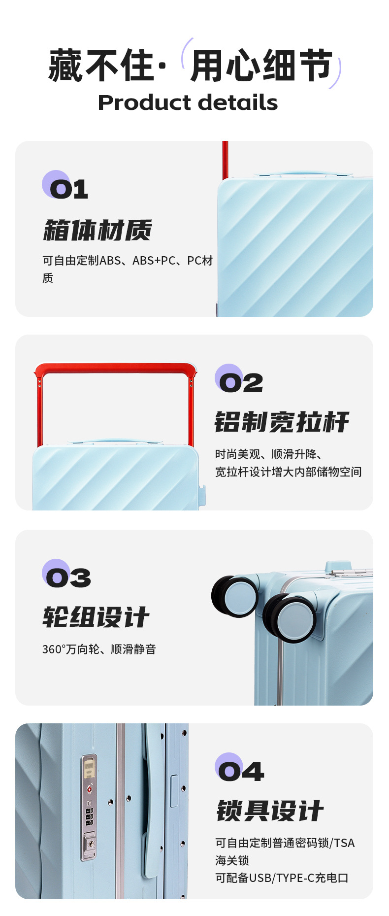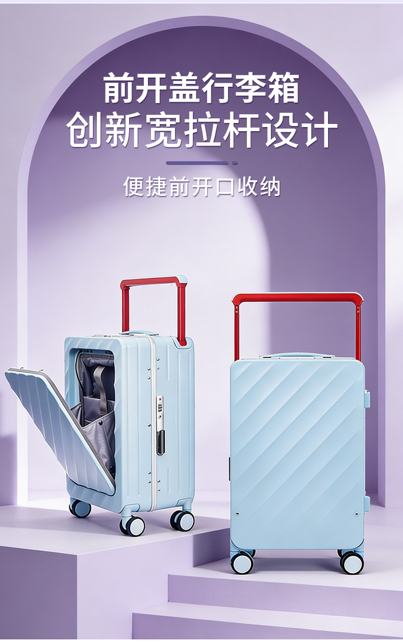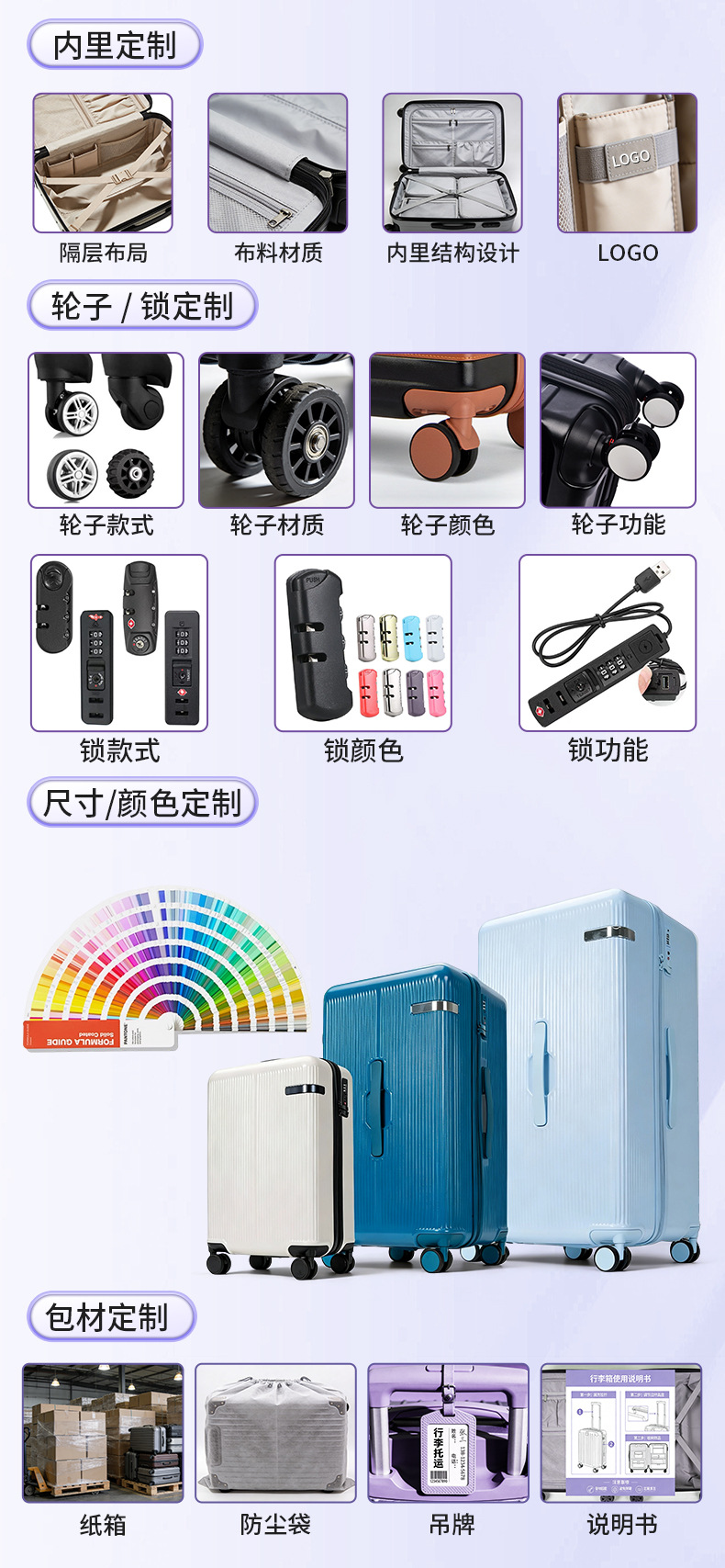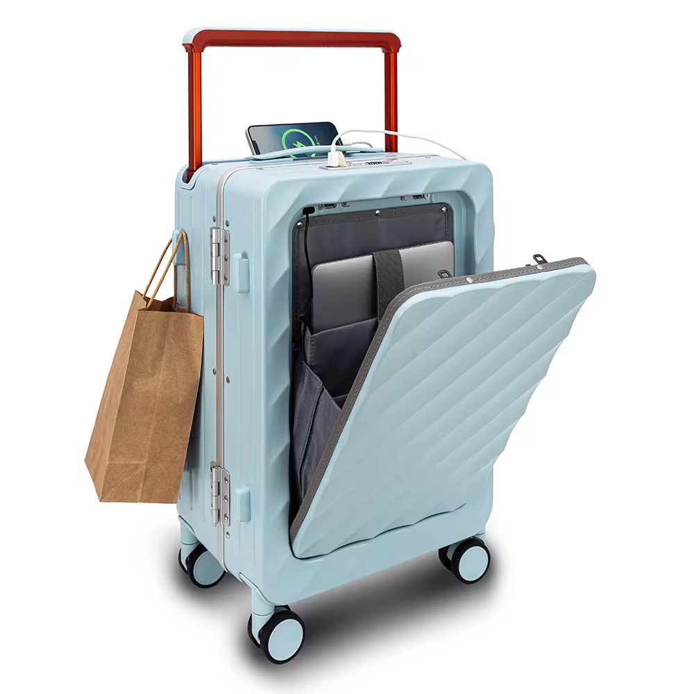 대외 무역 맞춤형 알루미늄 프레임 트롤리 케이스 전면 개방형 가방 20inch 와이드 트롤리 USB 충전 비밀번호 상자 대용량스토어 가기
