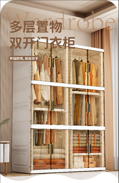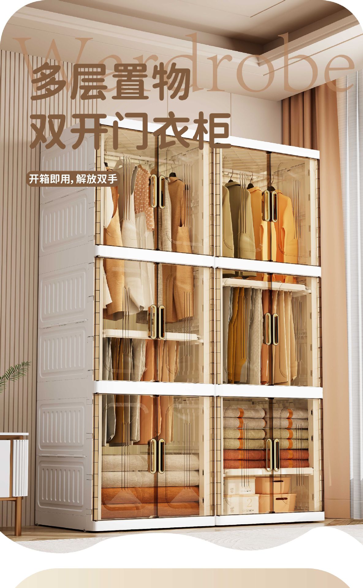 접이식 옷장 성인용 대형 옷걸이 접이식 수납장 다층 선반 수납장 벽걸이 무설치 침실용