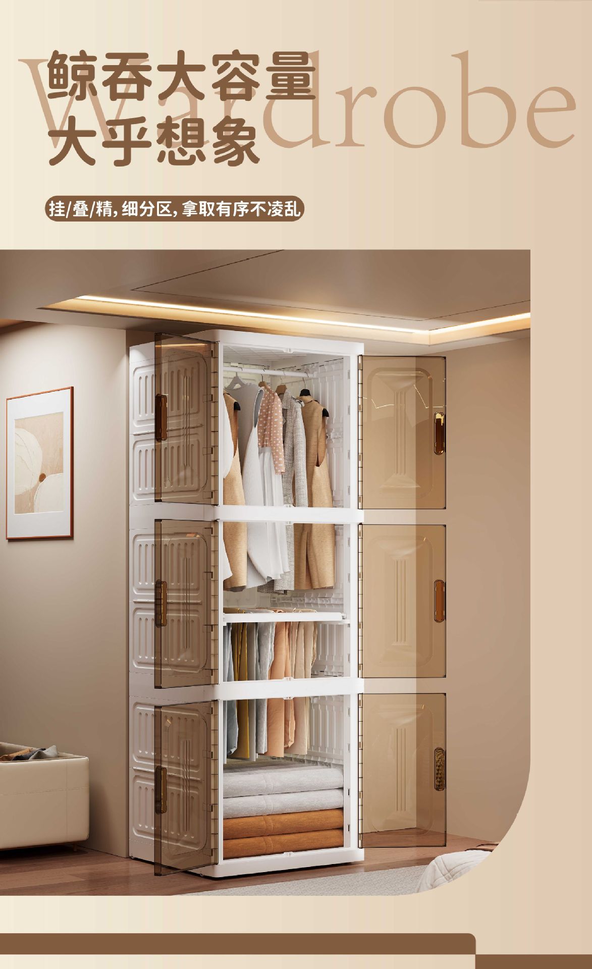 접이식 옷장 성인용 대형 옷걸이 접이식 수납장 다층 선반 수납장 벽걸이 무설치 침실용스토어 가기