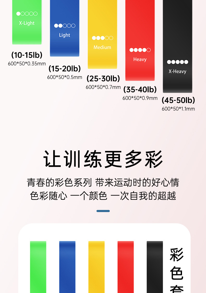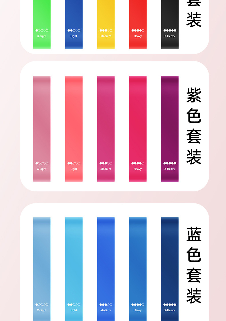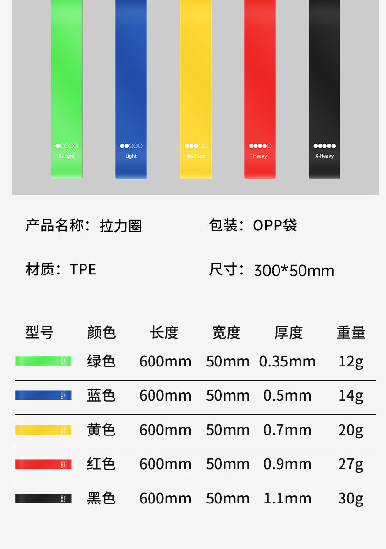 • 컬러 TPE 5종 세트, 인쇄된 강도 표시, 단일 OPP 가방 포장, 단일 OPP 가방 포장