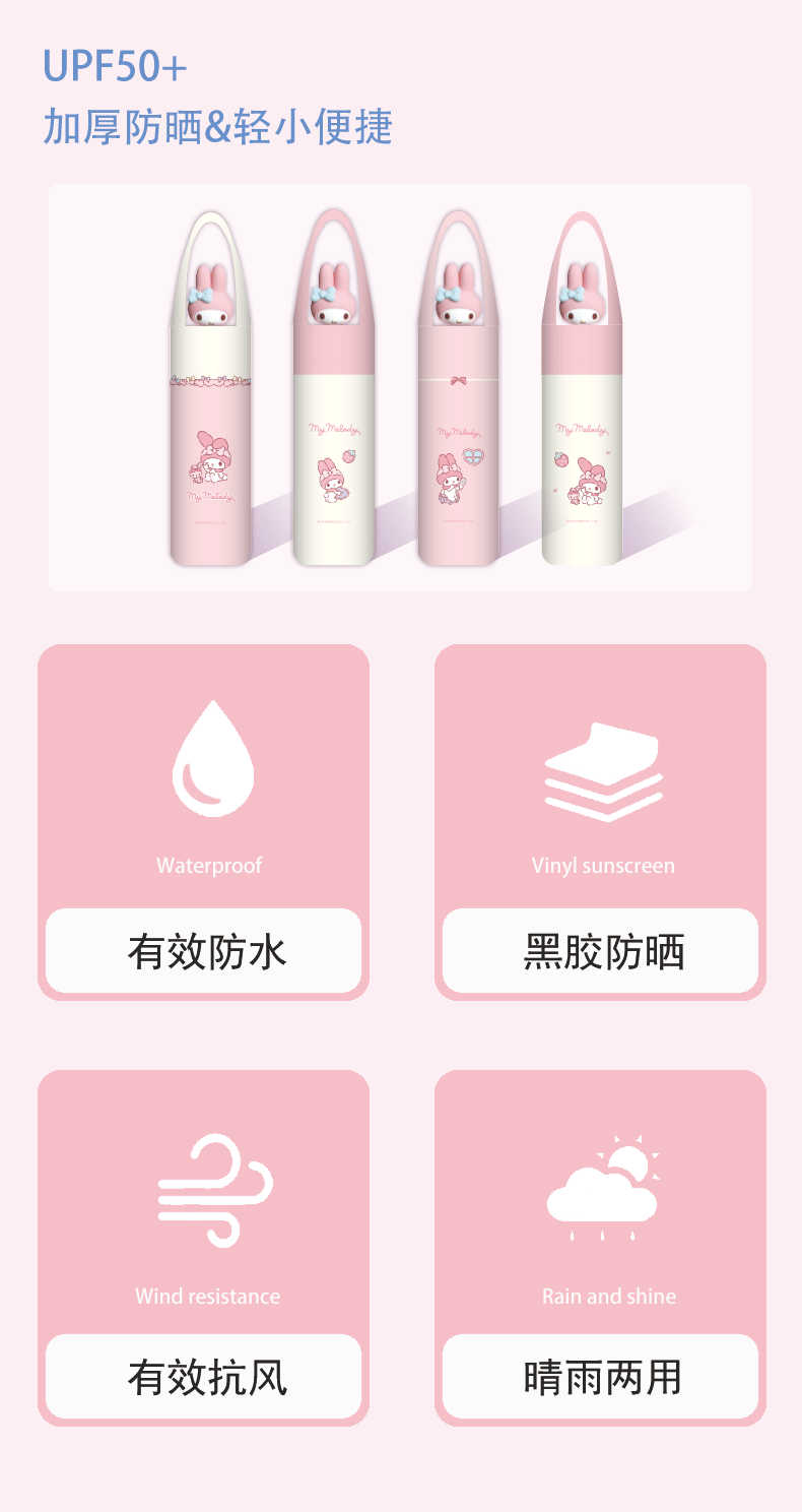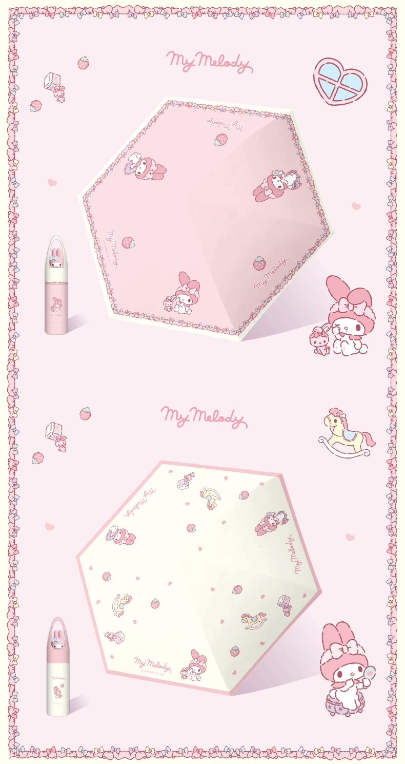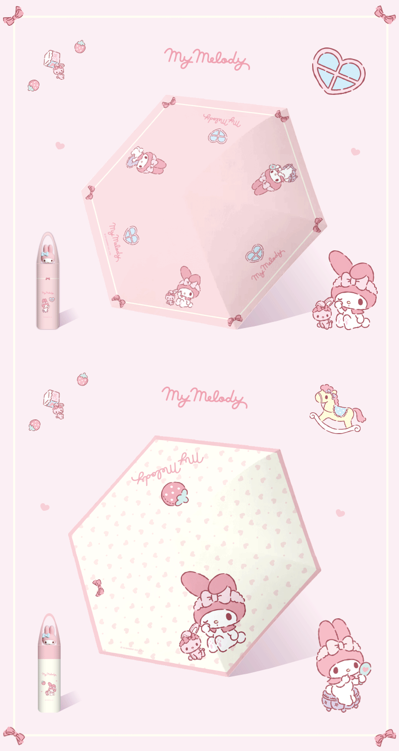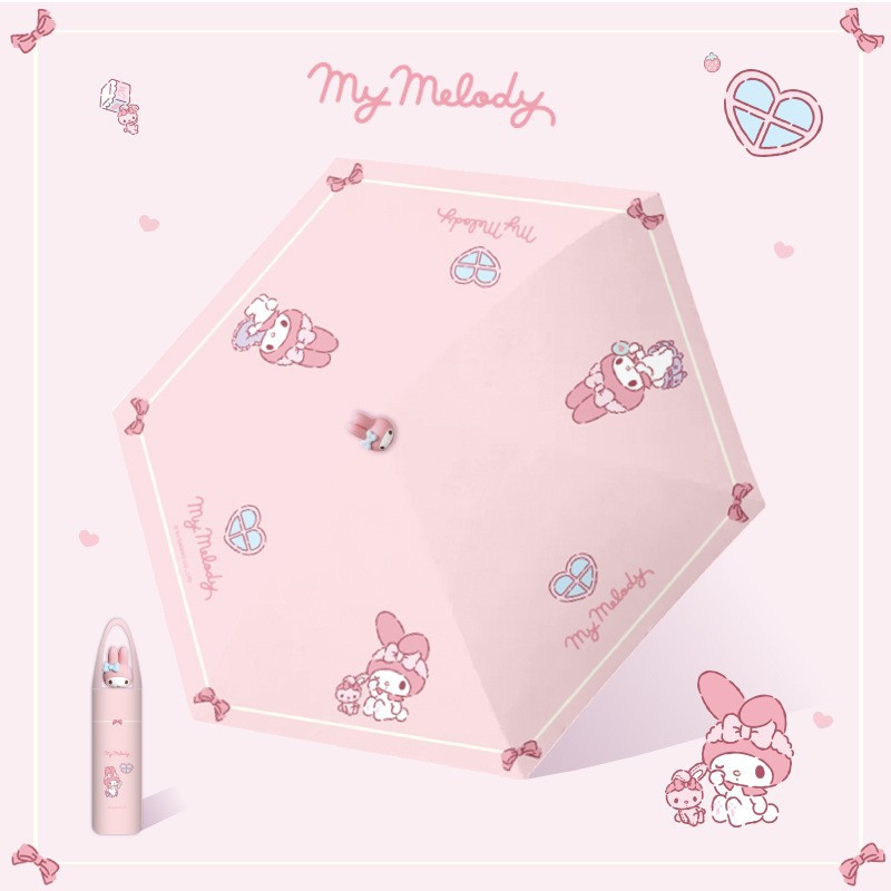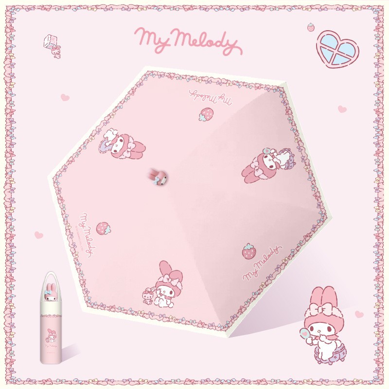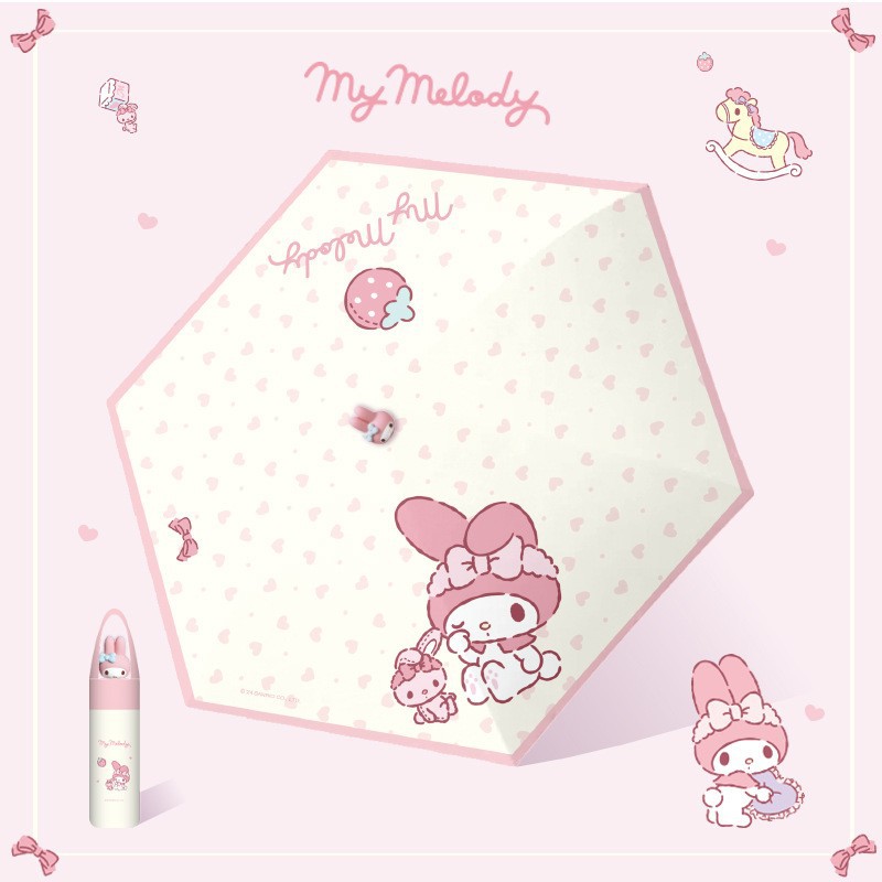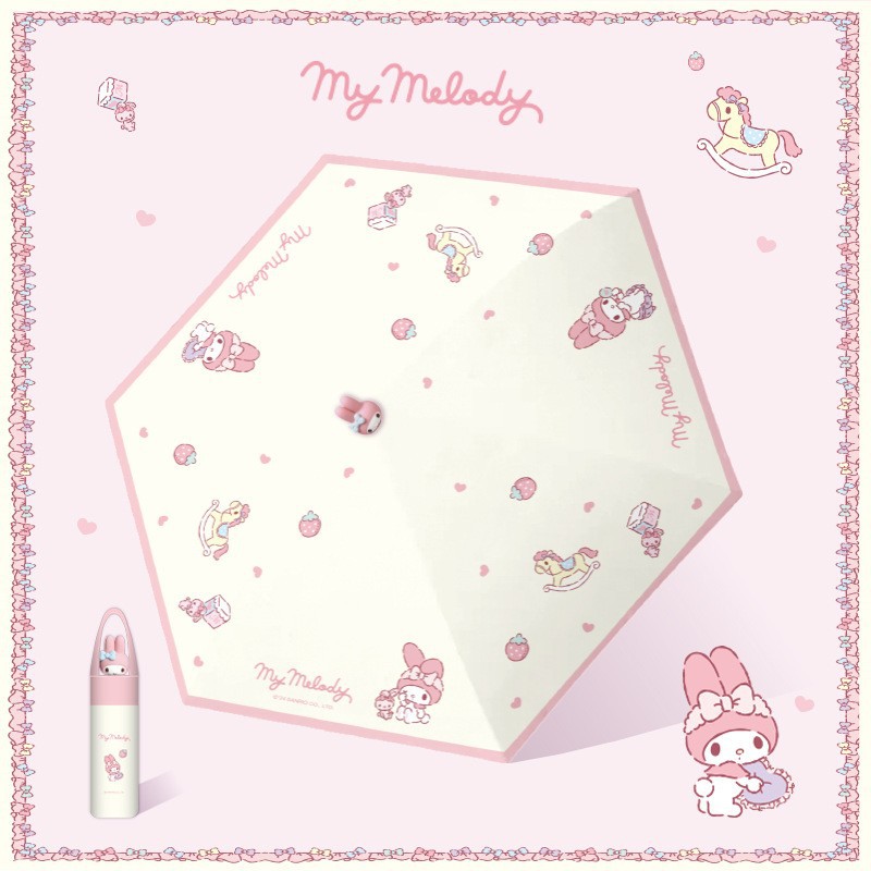 산리오 정품 멜로디 자외선 차단 우산 여성용 비 또는 빛 3차원 인형 두꺼운 접이식 태양 수동 우산