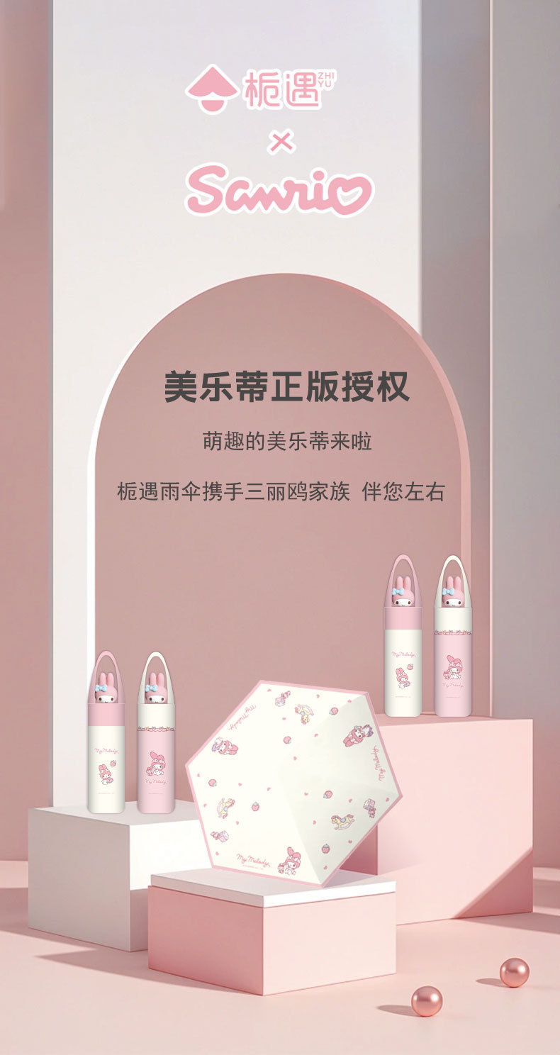 산리오 정품 멜로디 자외선 차단 우산 여성용 비 또는 빛 3차원 인형 두꺼운 접이식 태양 수동 우산스토어 가기