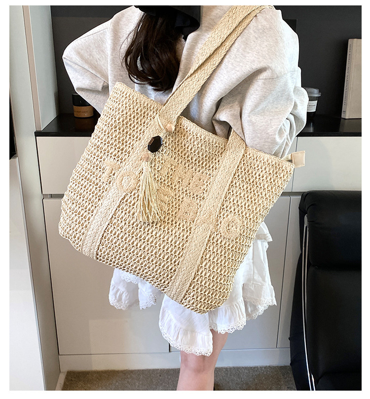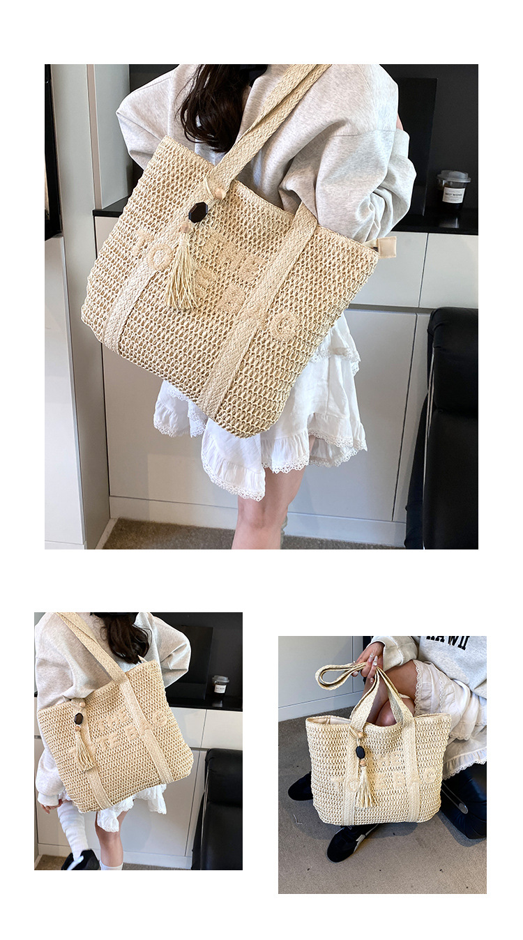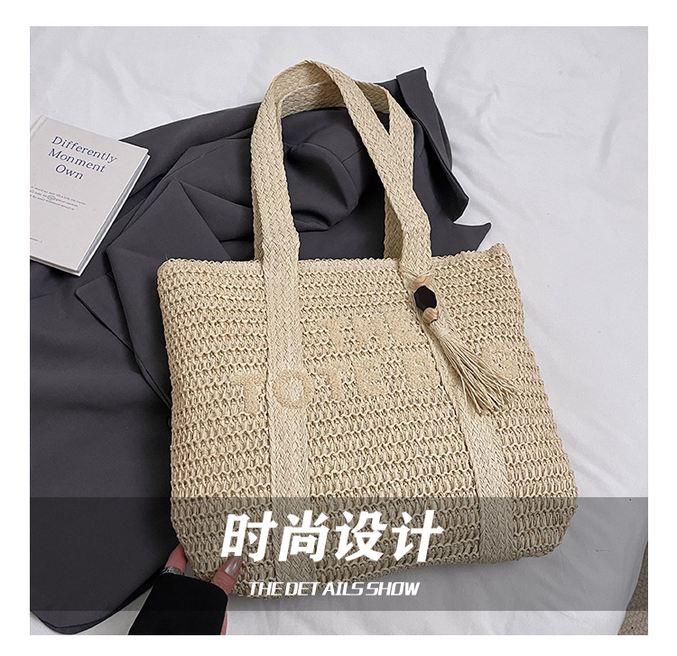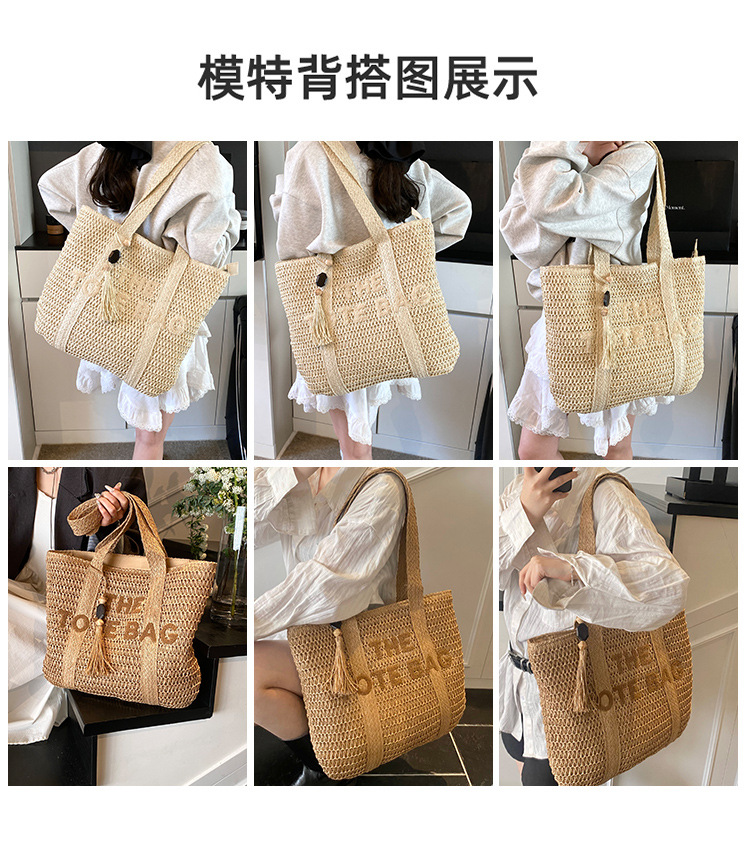 여행 대용량 밀짚 짠 가방 여성 2025 새로운 고급 감각 수제 짠 어깨 가방 해변 휴일 토트 백스토어 가기