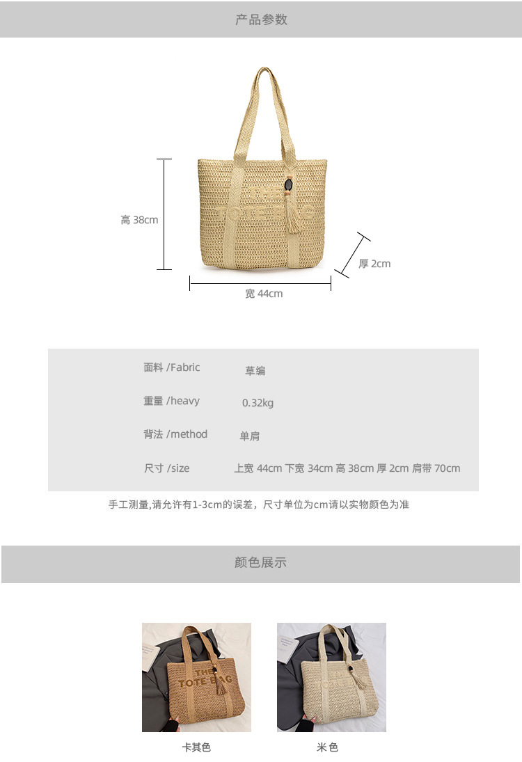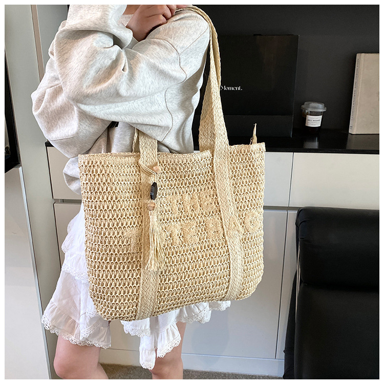 여행 대용량 밀짚 짠 가방 여성 2025 새로운 고급 감각 수제 짠 어깨 가방 해변 휴일 토트 백
