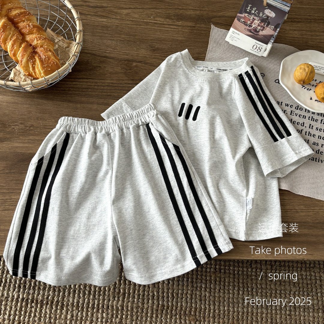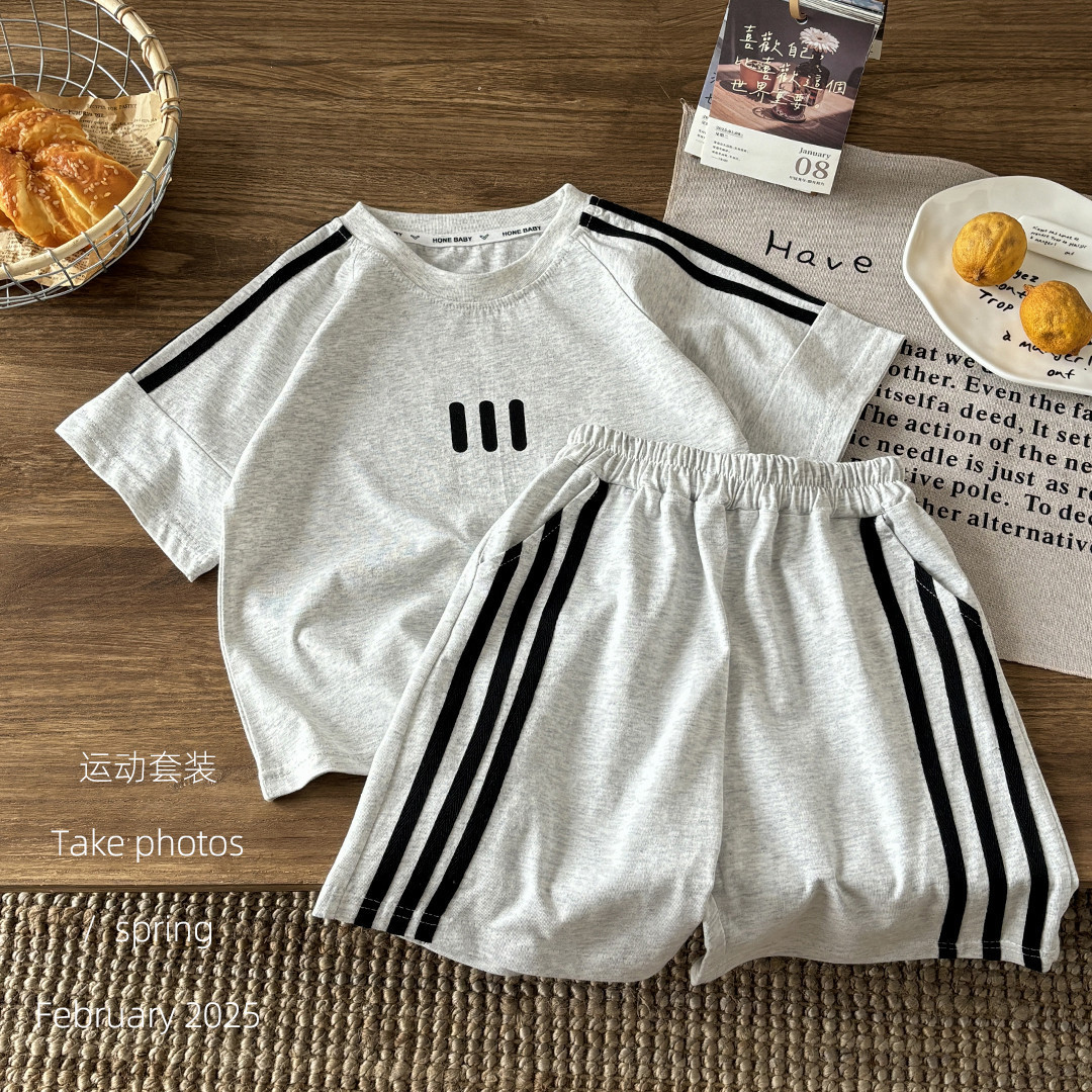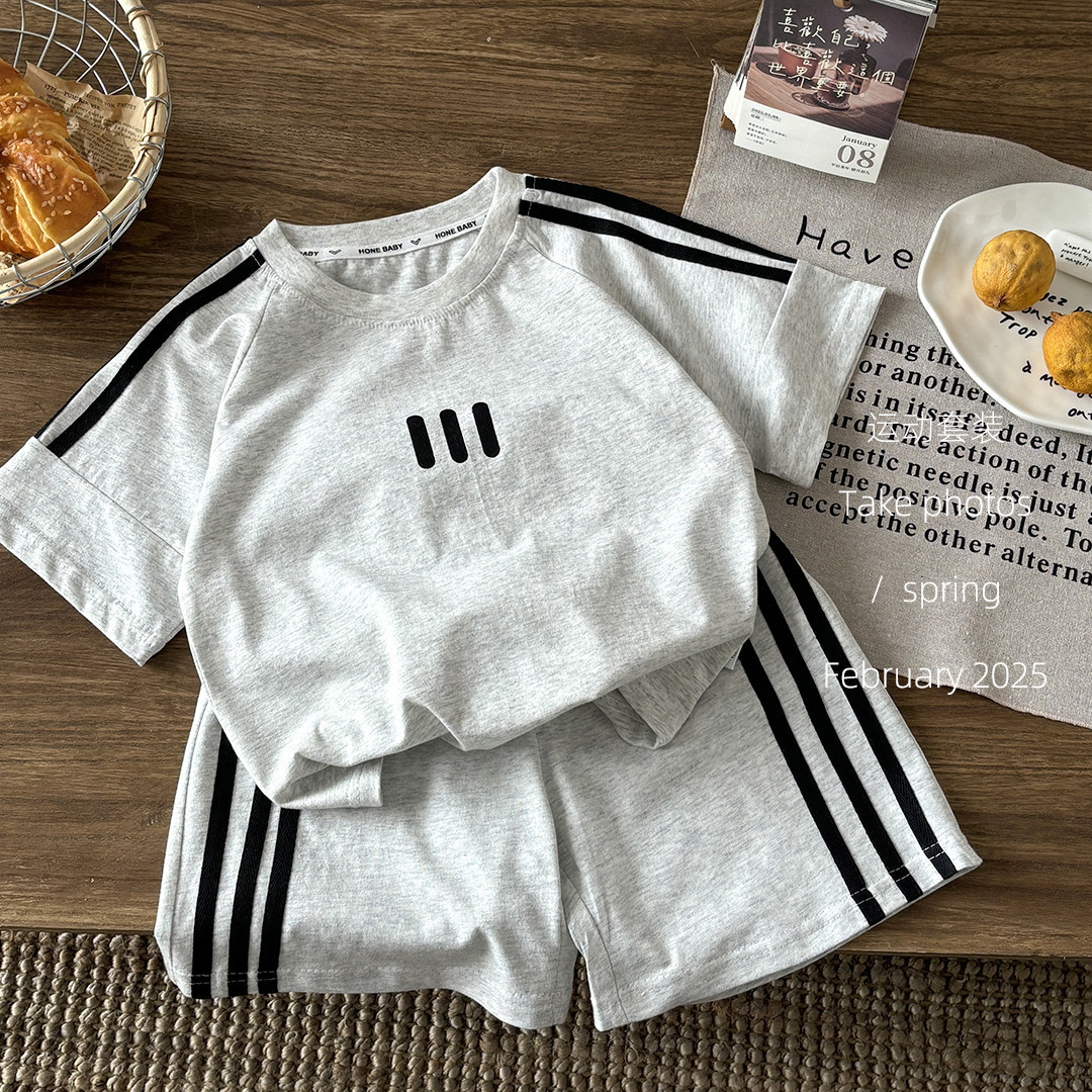 어린이 여름 반팔 세트 티셔츠 투피스 퓨어 코튼 한국식 중 · 대형 어린이 세트 올매치 바느질 남녀 어린이 세트