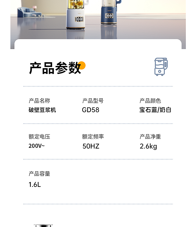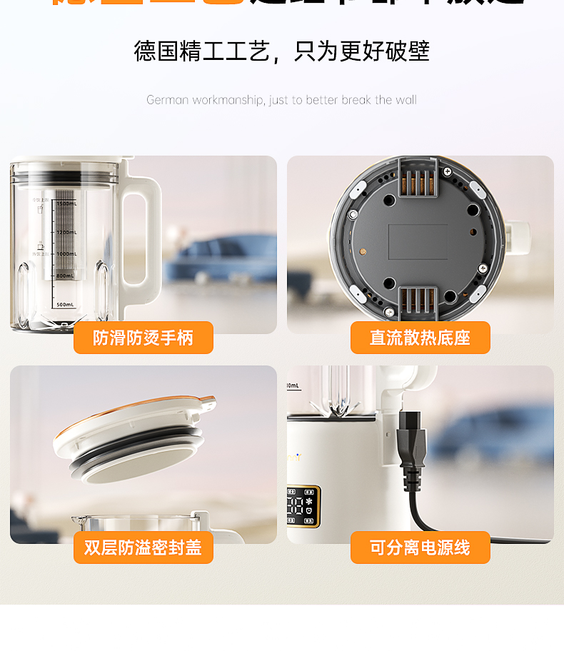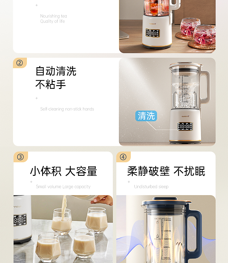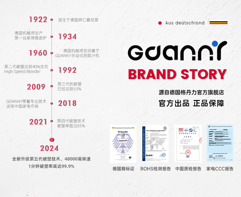 독일 GDANNY 벽 파괴 기계 소형 가정용 완전 자동 무소음 새로운 미니 두유 기계 1인용 잔류물 없음 2025스토어 가기