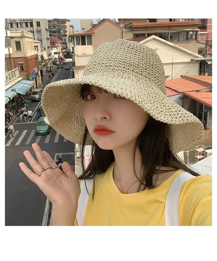 여성 여름 모자 순수 손으로 짠 밀짚 모자 봄과 가을 야외 양산 모자 모든 경기 해변 선 스크린 모자 접이식스토어 가기