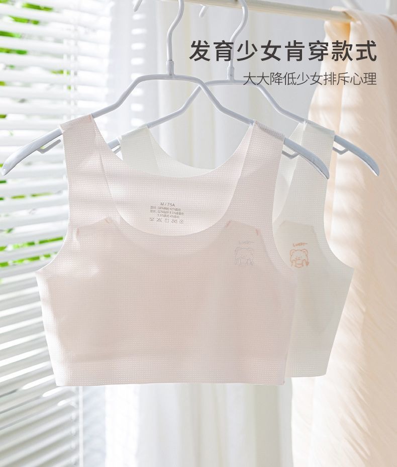 여름 얼음 실크 원활한 소녀 속옷 소녀 조끼 발달 기간 초등학교 소녀 브래지어 안티 볼록 통기성 얇은