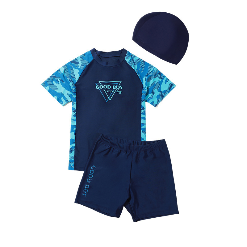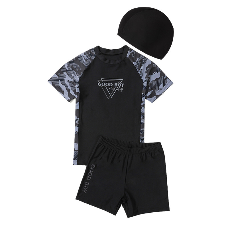 • 흑인 뚱뚱한 소년 굿보이 슈트 (수영복 + 수영 트렁크 + 수영 모자)