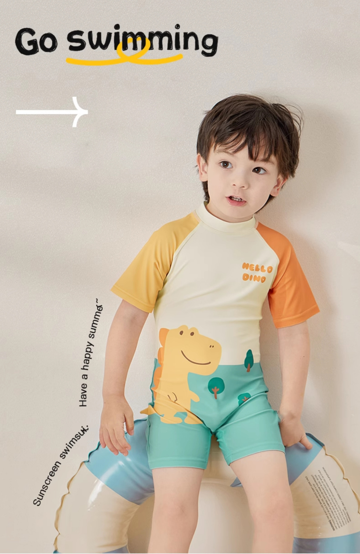 • 노란색 귀여운 티라노사우루스 렉스 슈트(수영복+수영팬츠)